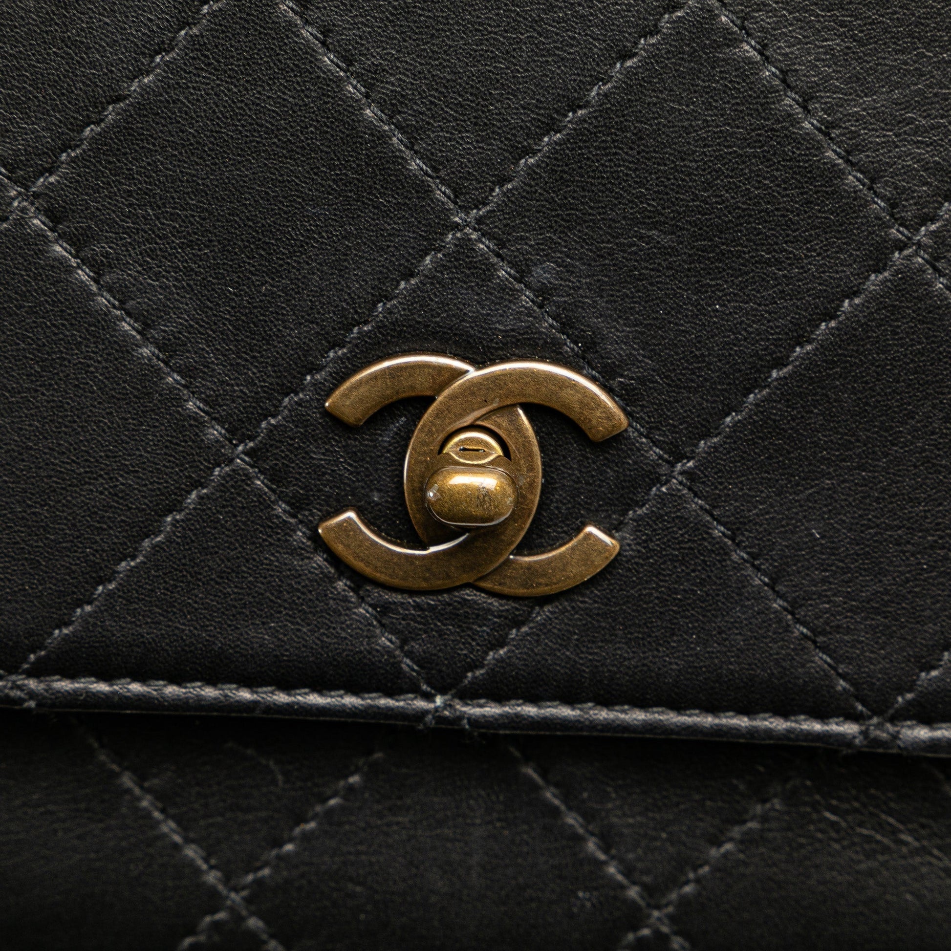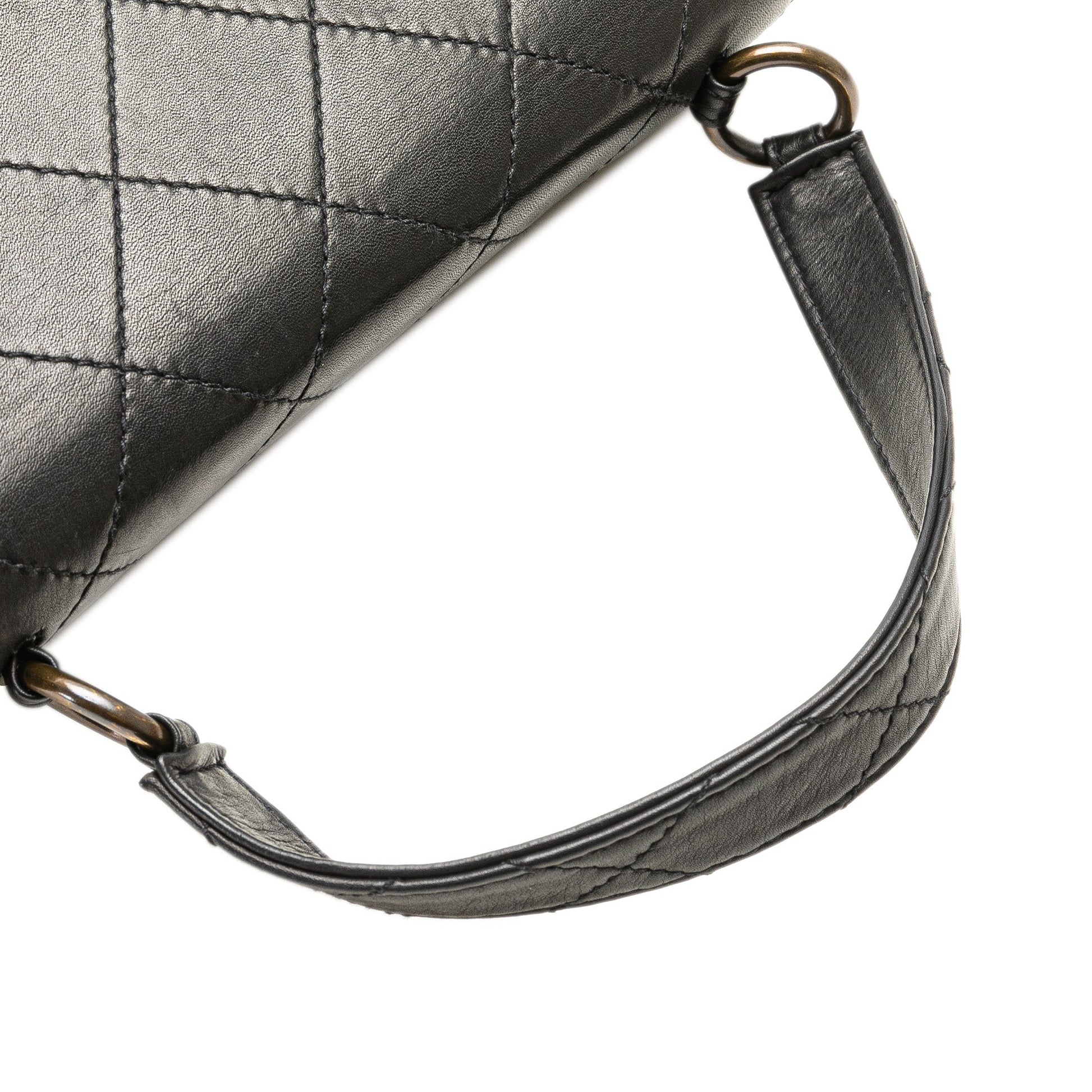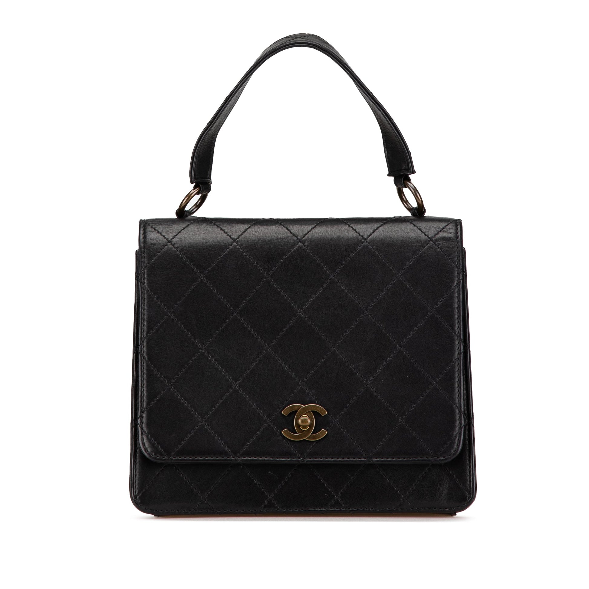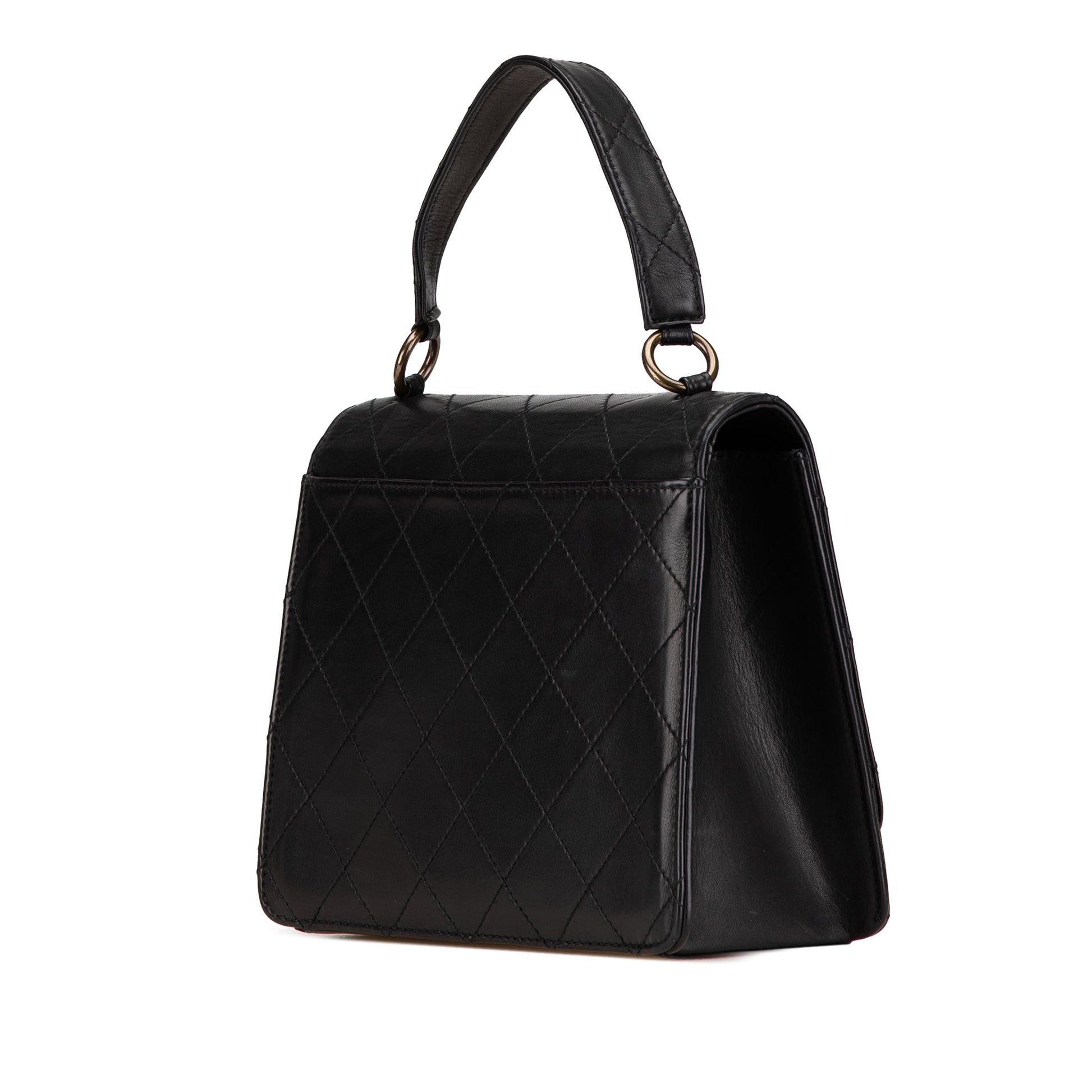 Black Chanel Quilted Lambskin Top Handle Square Flap Handbag