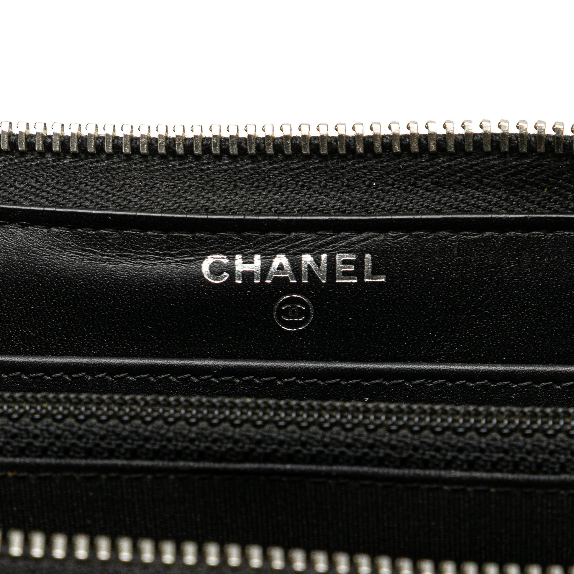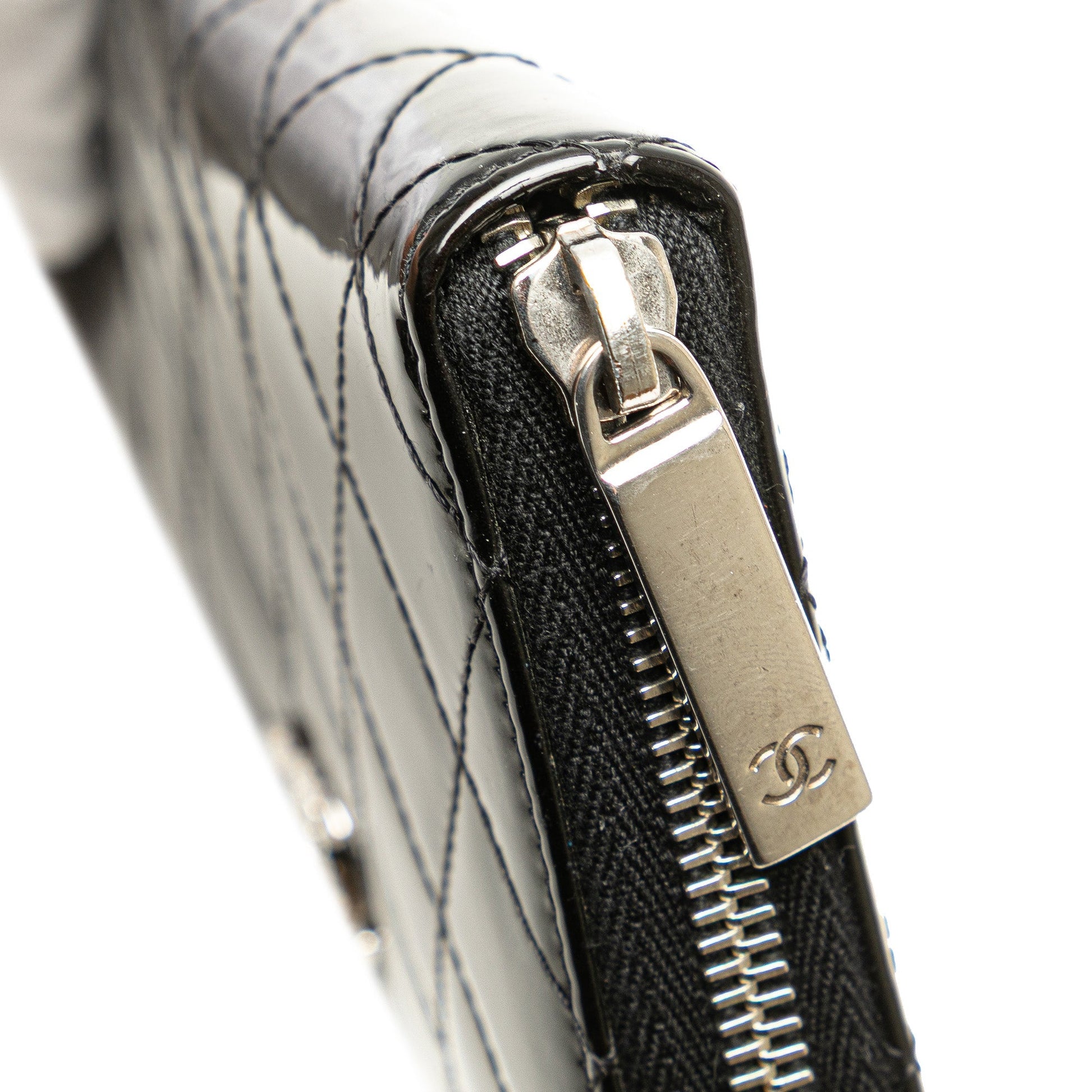 Black Chanel Quilted Patent Brilliant Zip Around Wallet