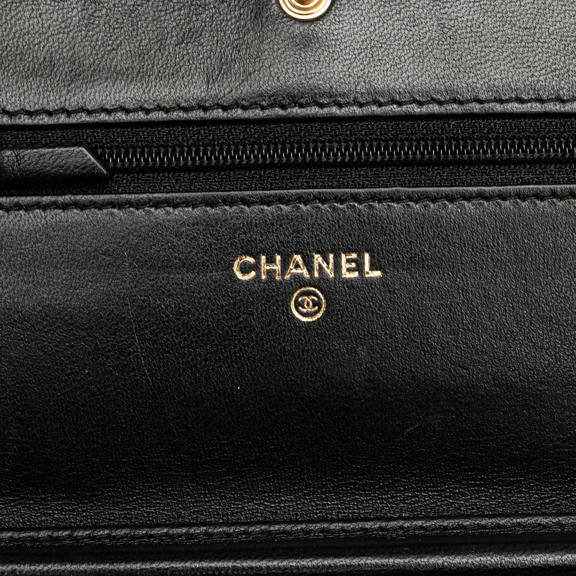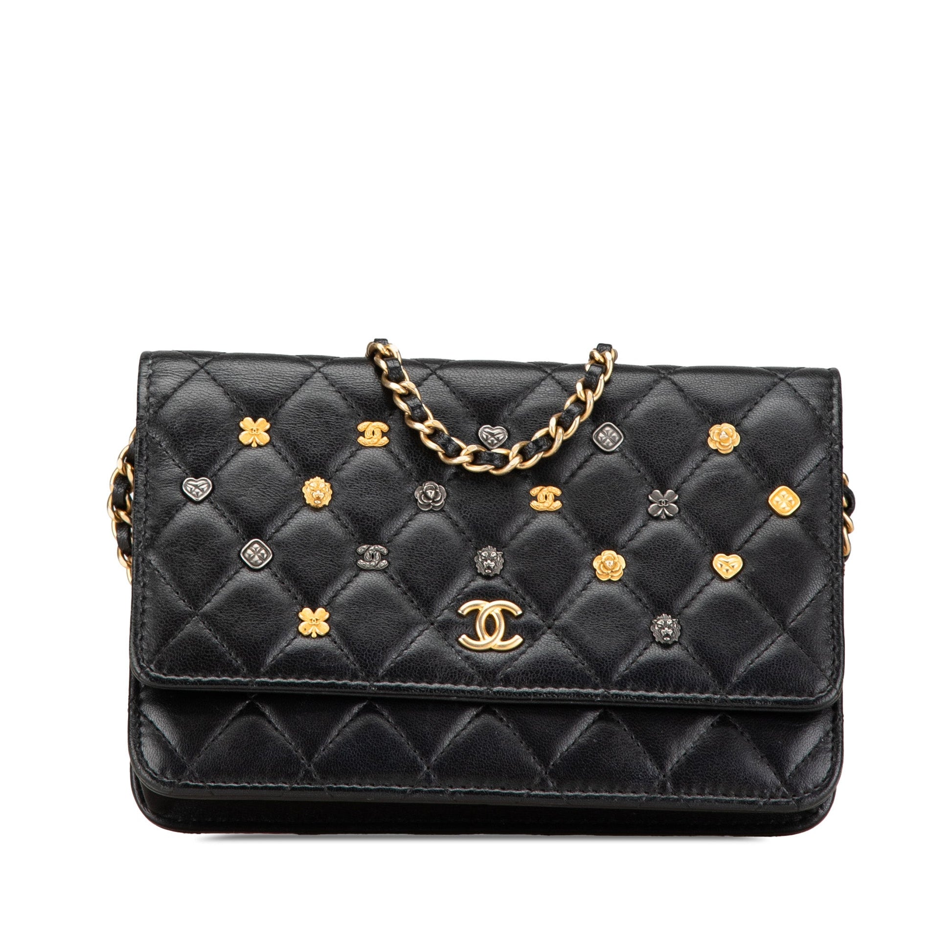Black Chanel Quilted Studded Lambskin 18K Lucky Charms Wallet On Chain Crossbody Bag