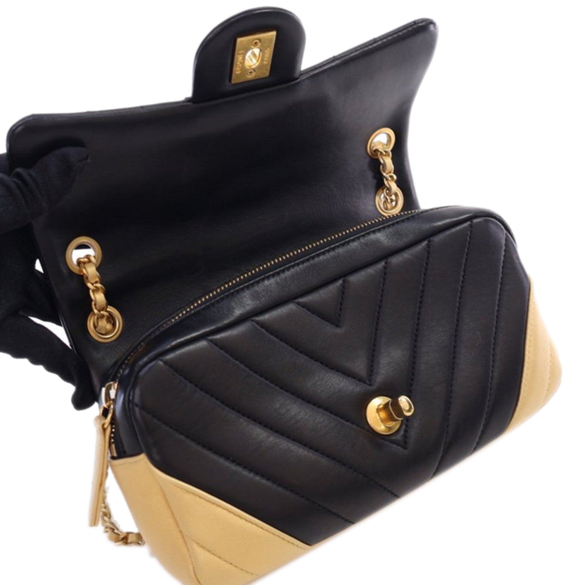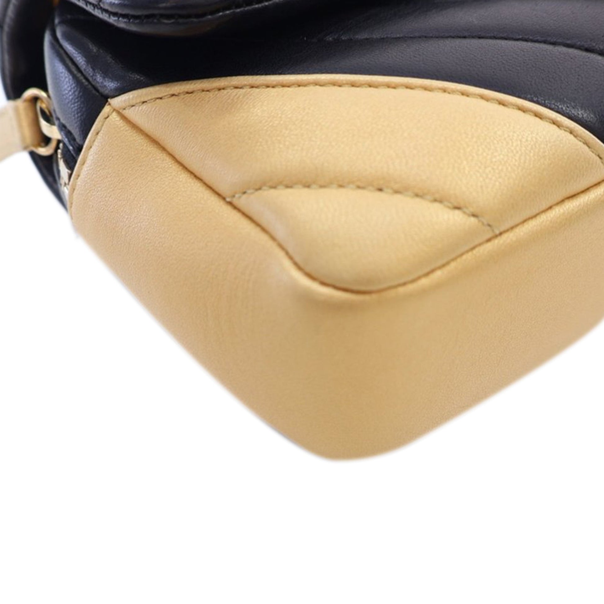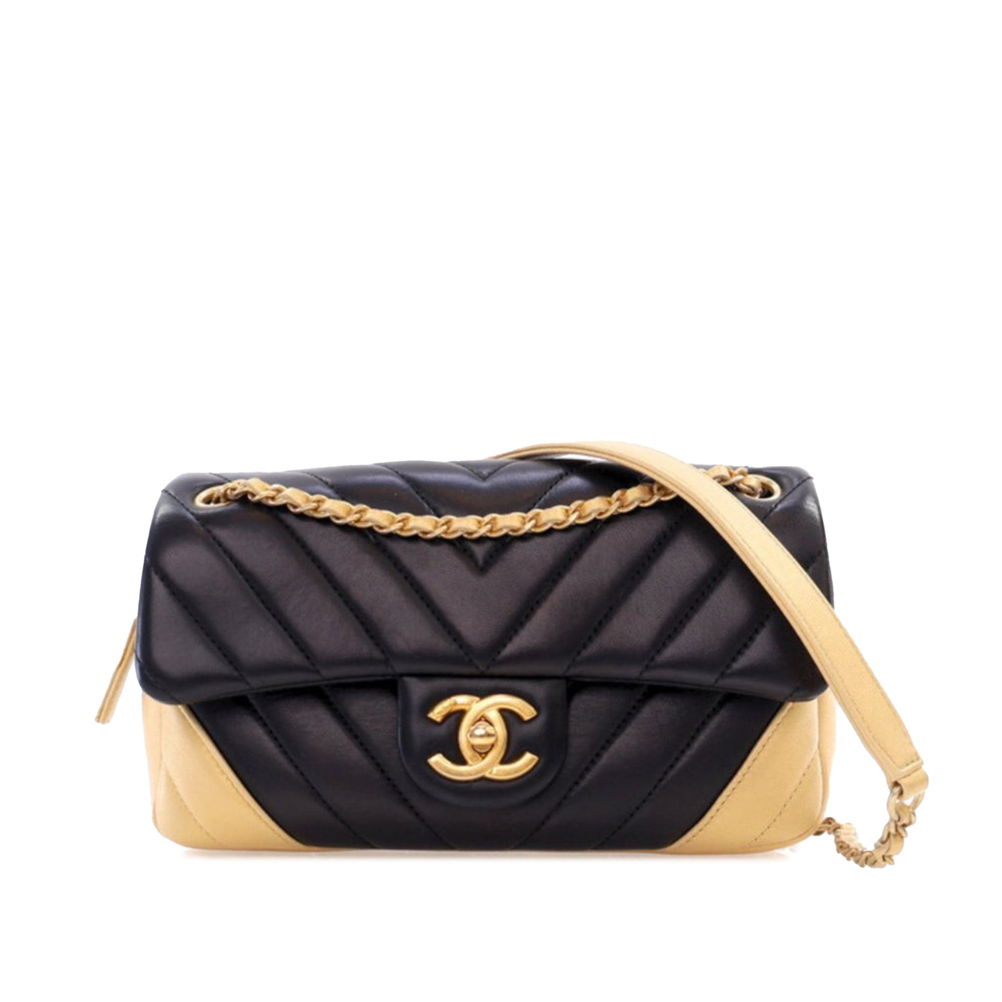 Black Chanel Small Bicolor Chevron Lambskin Single Flap Shoulder Bag
