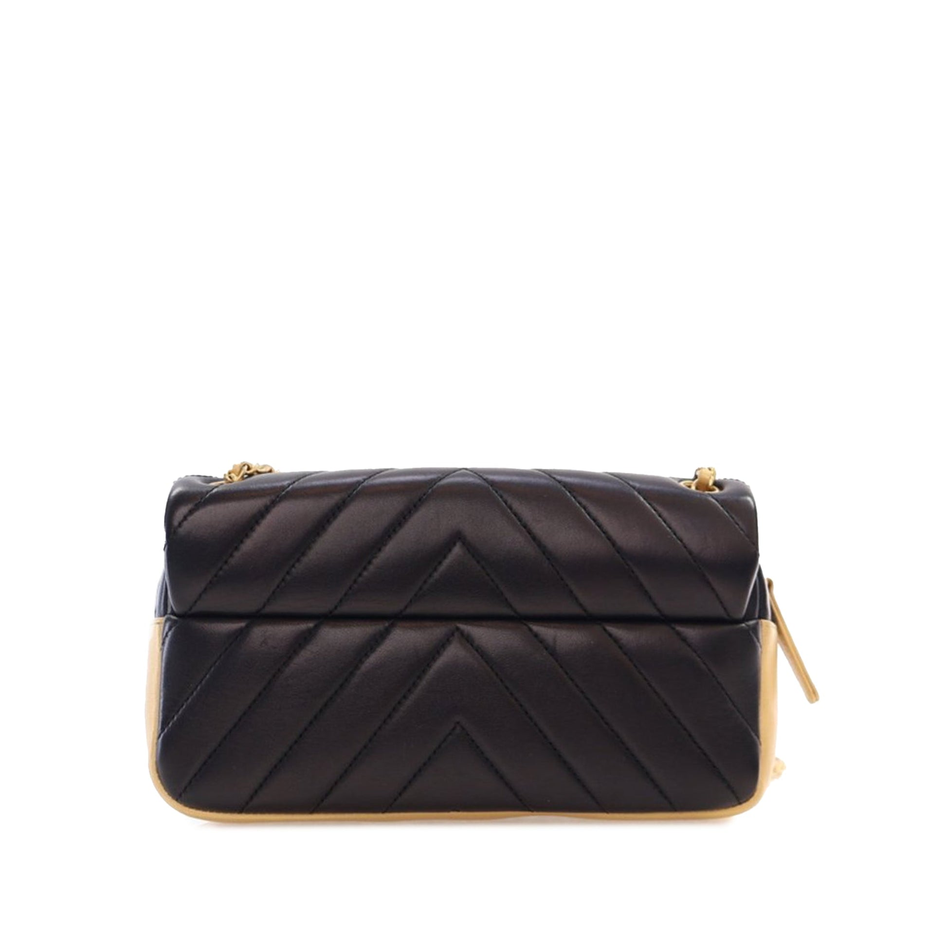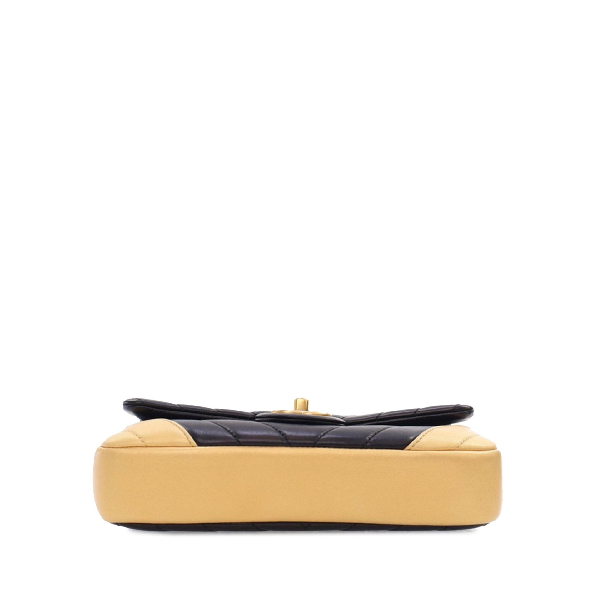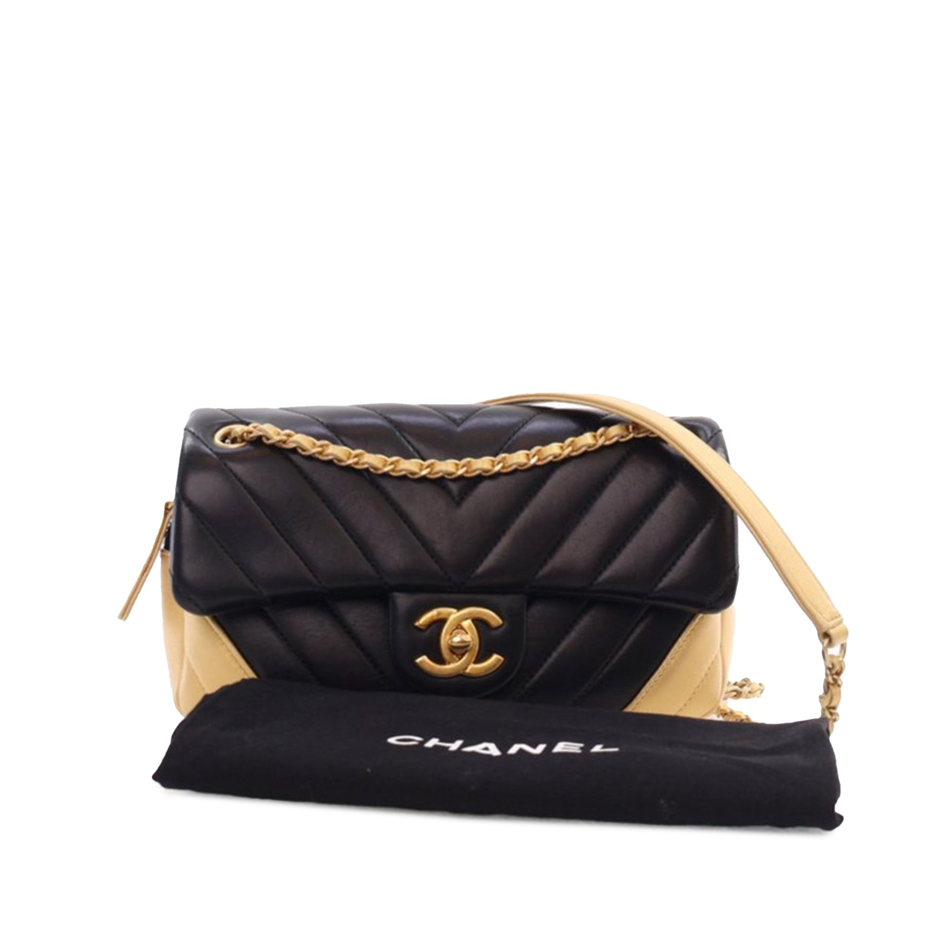 Black Chanel Small Bicolor Chevron Lambskin Single Flap Shoulder Bag