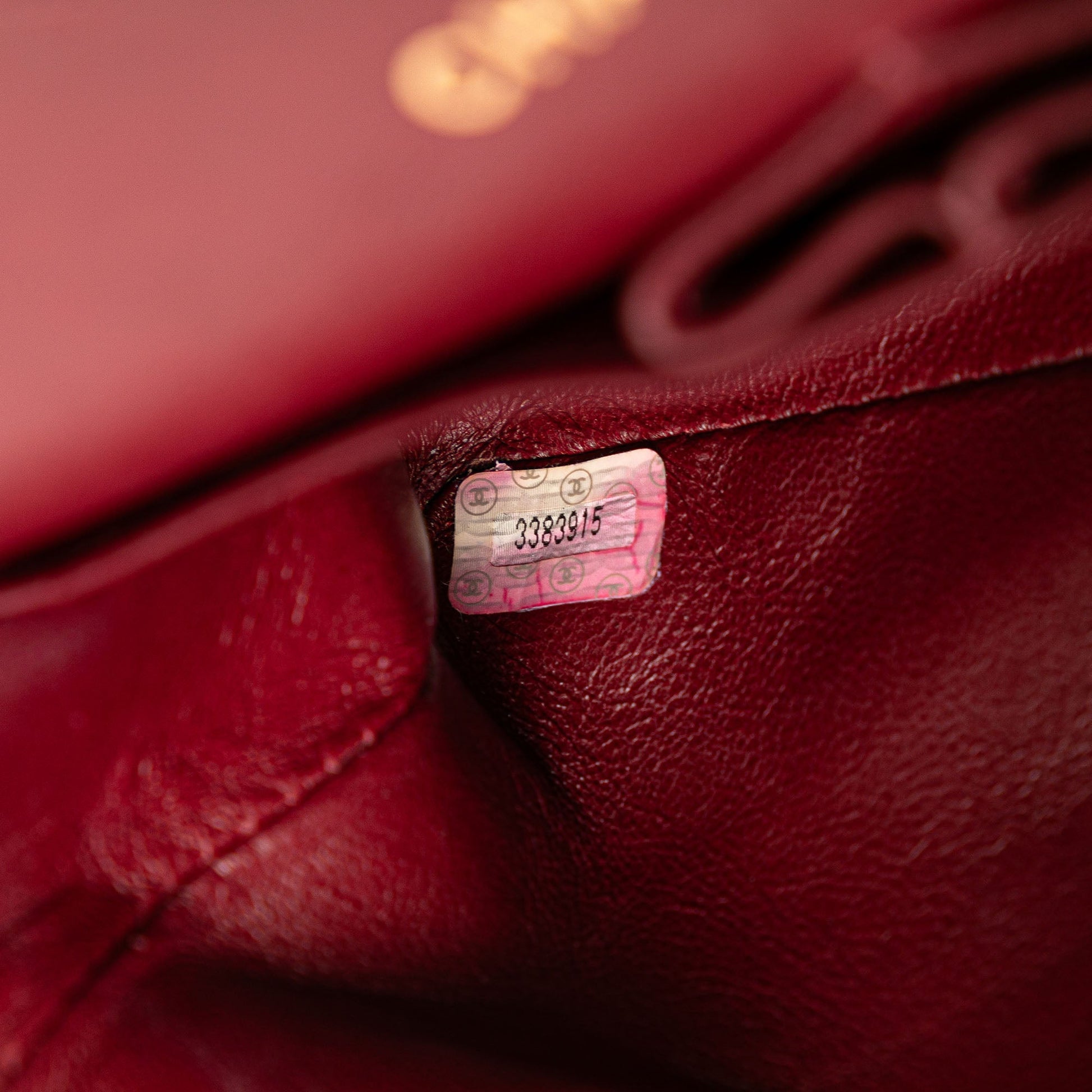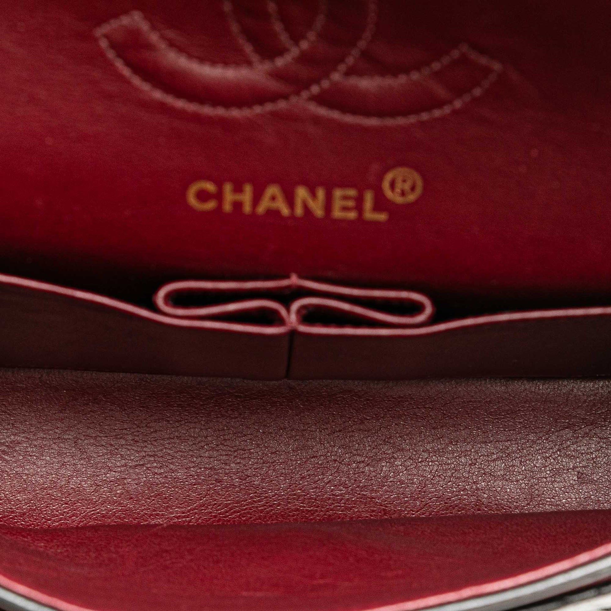 Product Details: Black Chanel Small Classic Lambskin Double Flap Shoulder Bag. This shoulder bag features a quilted lambskin leather body, leather woven chain shoulder straps, double front flaps with interlocking Cs and a twist lock closure, an exterior back slip pocket, and interior zip and slip pockets. Snap button is replaced. 5.9" L x 9.1" W x 2.6" D. Serial number 3383915.