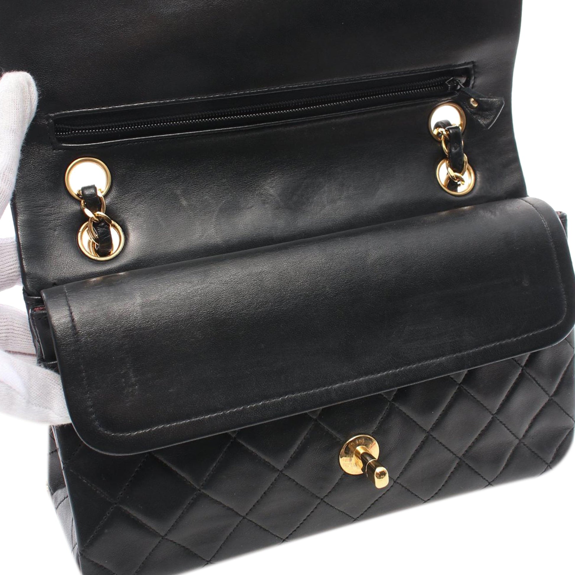Black Chanel Small Classic Lambskin Double Flap Shoulder Bag