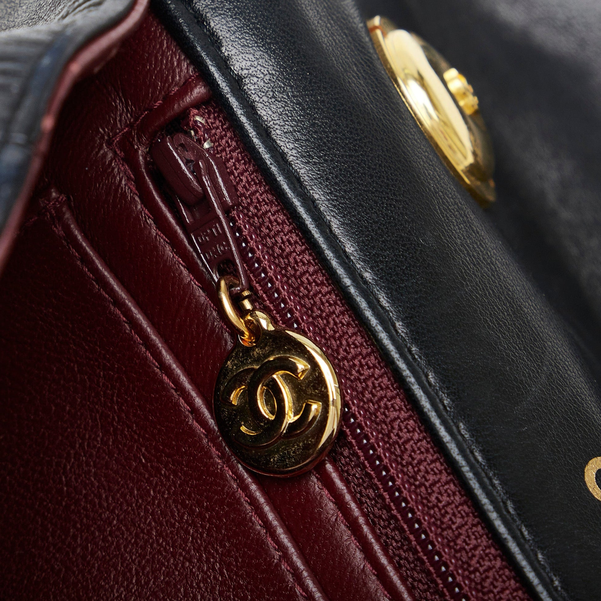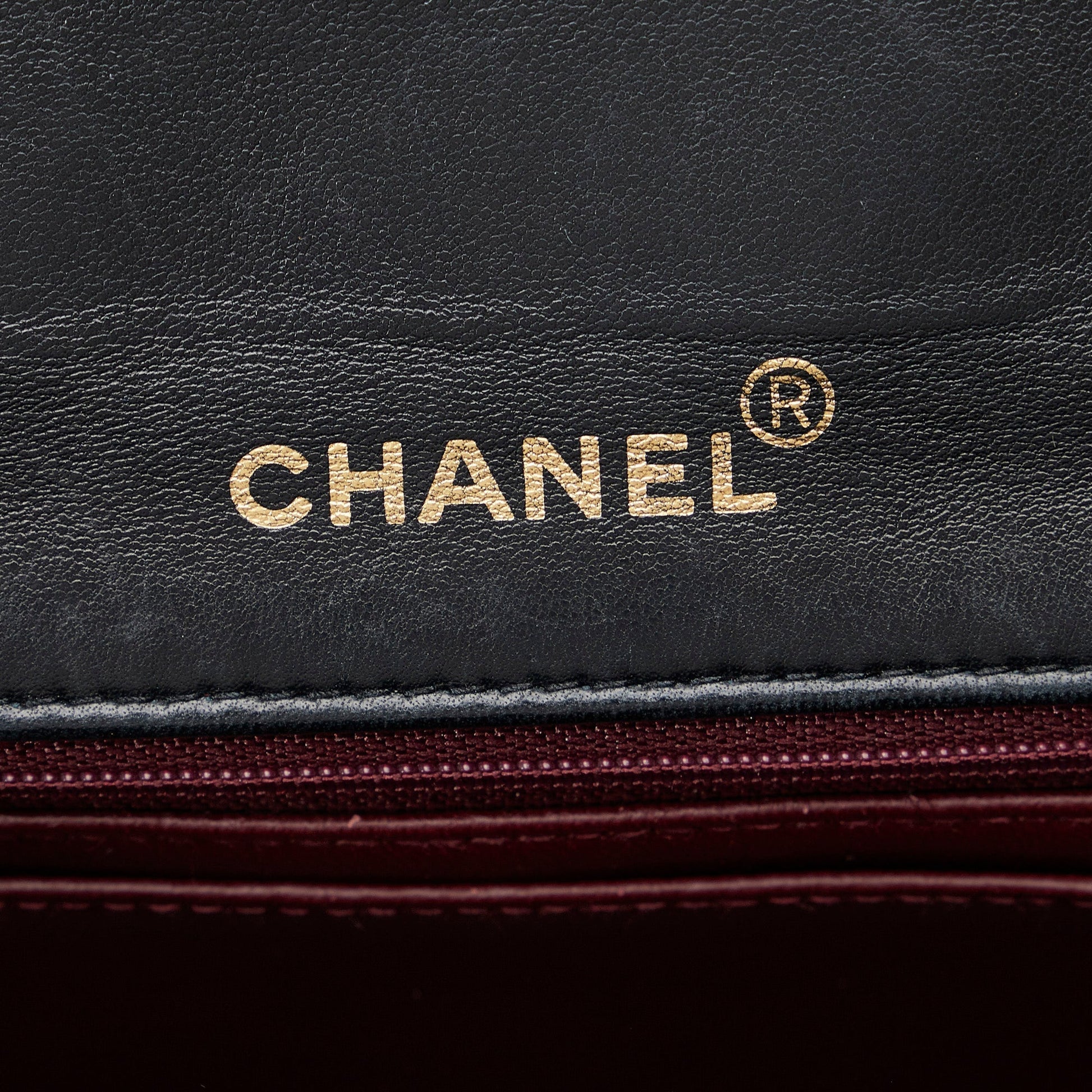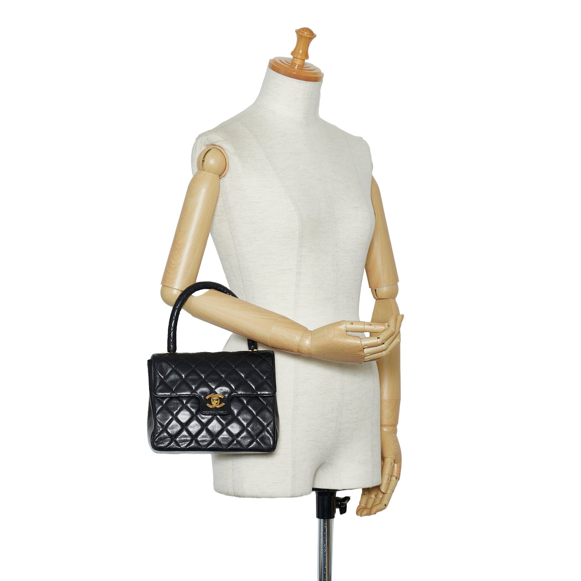 Product Details: Black Chanel Small Lambskin Kelly Top Handle Bag. The Kelly features a lambskin leather body, a rolled leather top handle, a front flap with a twist lock closure, and an interior zip pocket. 6.1" L x 7.5" W x 2.8" D, 4.1" drop. Serial number 2011009.