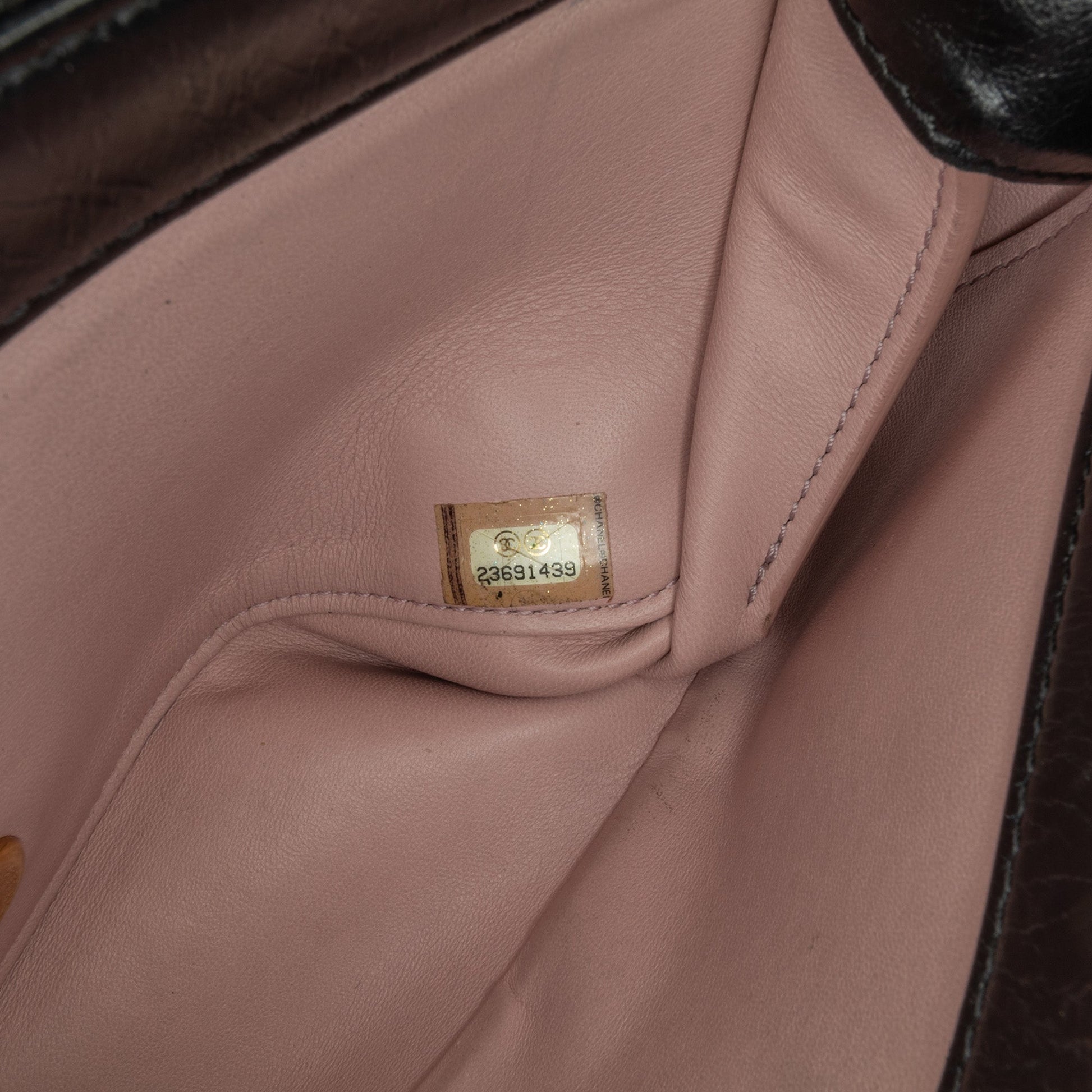 Product Details: Black Chanel Small Quilted Calfskin Straight Lined Flap Satchel. This satchel features a quilted calf leather body, a gold tone chain link handle, a chain link strap with leather guard, a front flap with interlocking Cs and a twist lock closure, and an interior zip pocket. Exterior top is repainted. 5.1" L x 9.4" W x 2.4" D, 4.3" drop. Serial number 23691439.