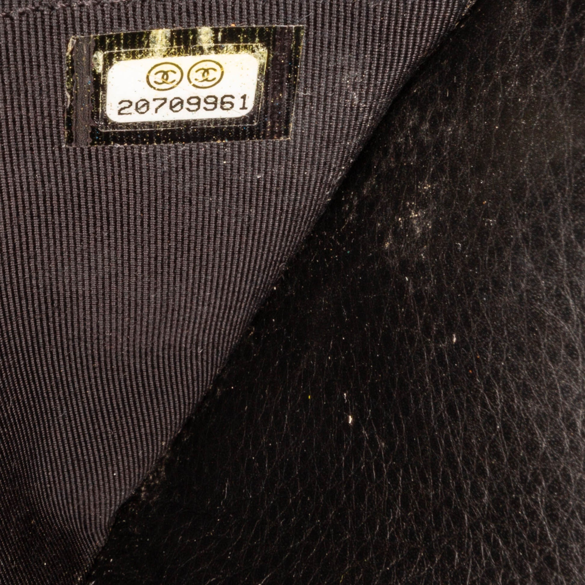 Product Details: Black Chanel Studded Leather Wallet on Chain Crossbody Bag. This wallet on chain features a studded leather body, a woven leather chain strap, an interior zip compartment, and interior slip pockets. 4.9" L x 7.5" W x 1.6" D. Serial number 20709961.