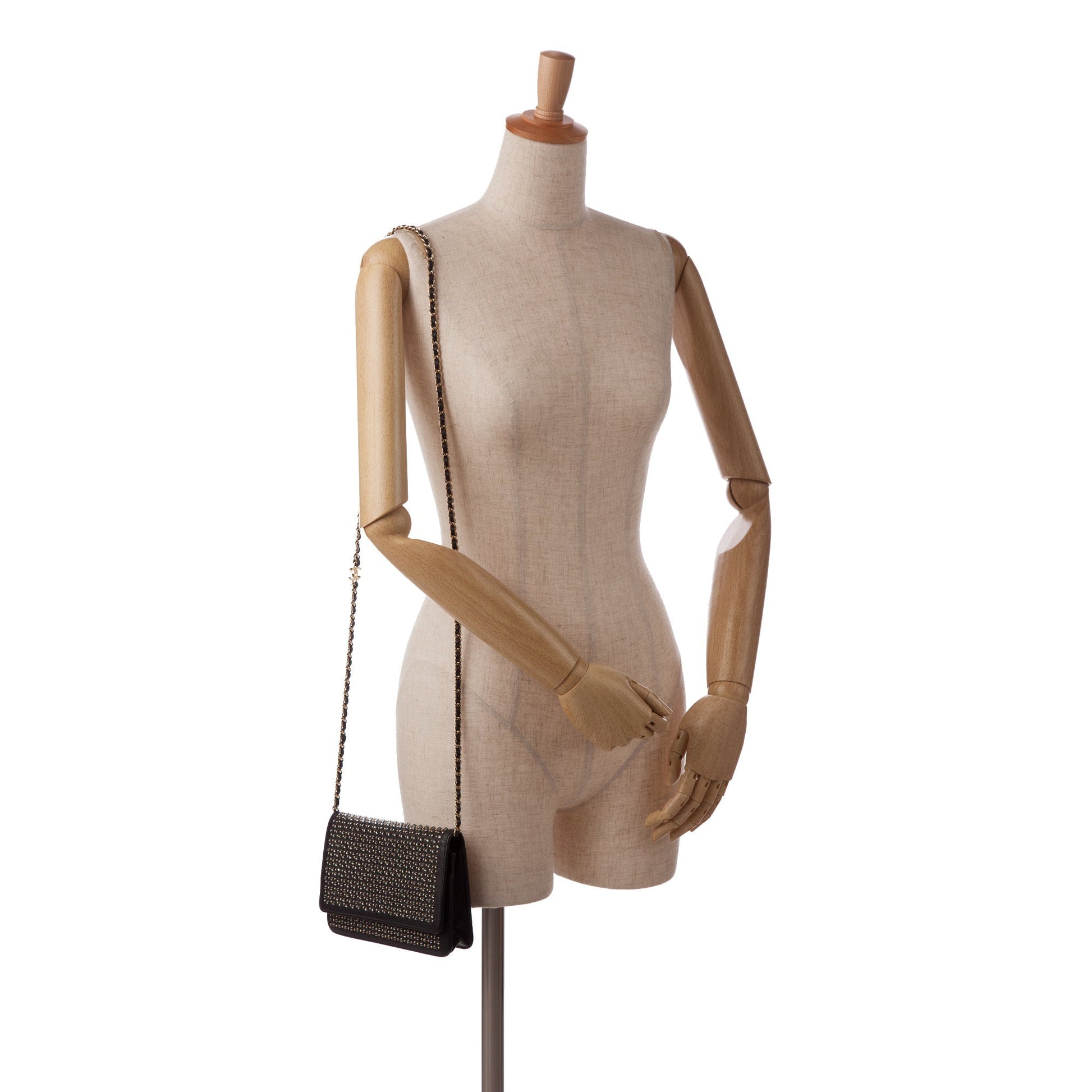 Black Chanel Studded Leather Wallet on Chain Crossbody Bag