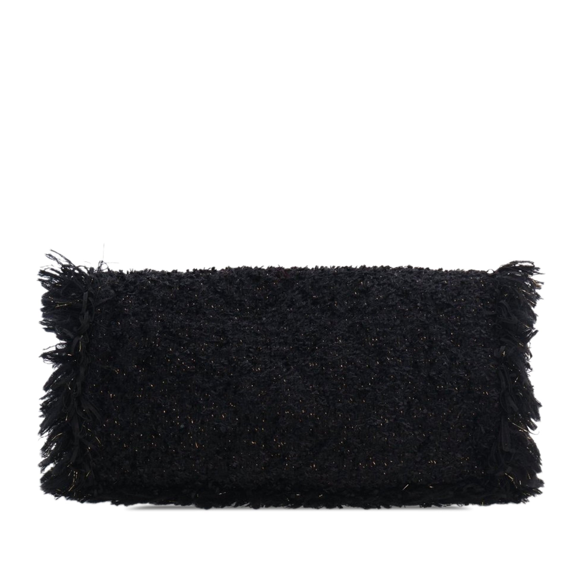Black Chanel Tweed Fringe Paris Cosmopolite Clutch
