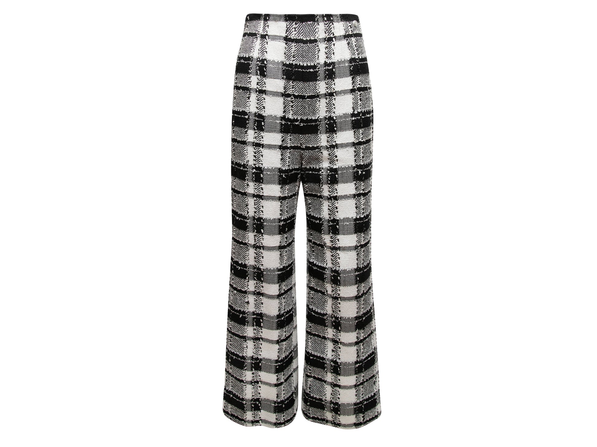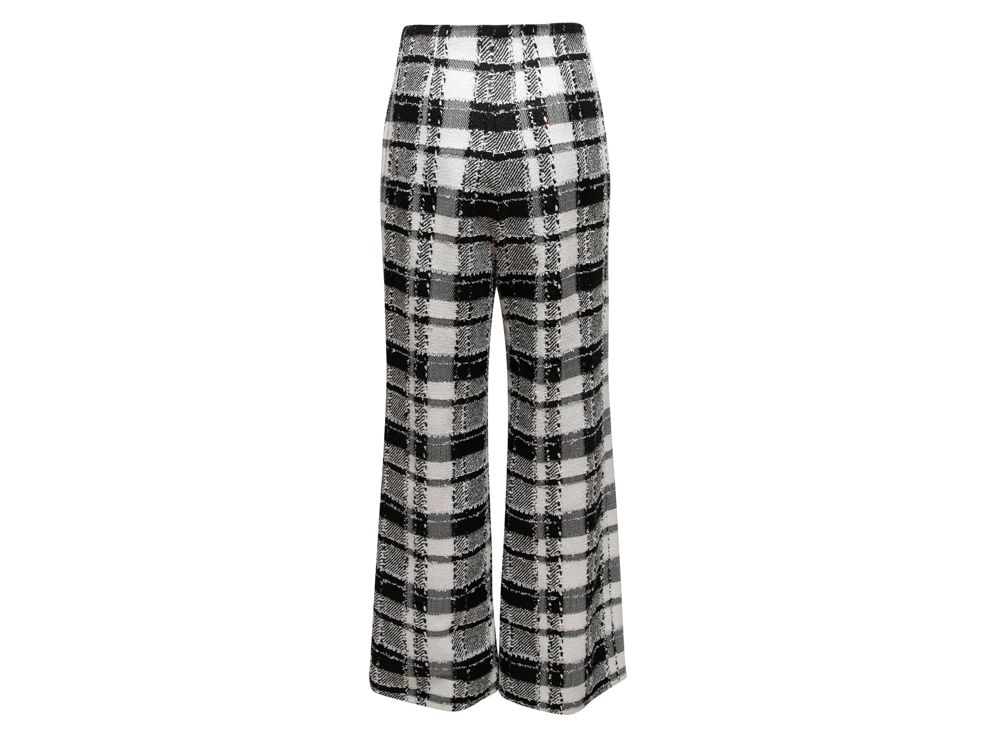 Black & White Chanel Plaid Wide-Leg Trousers Size FR 38