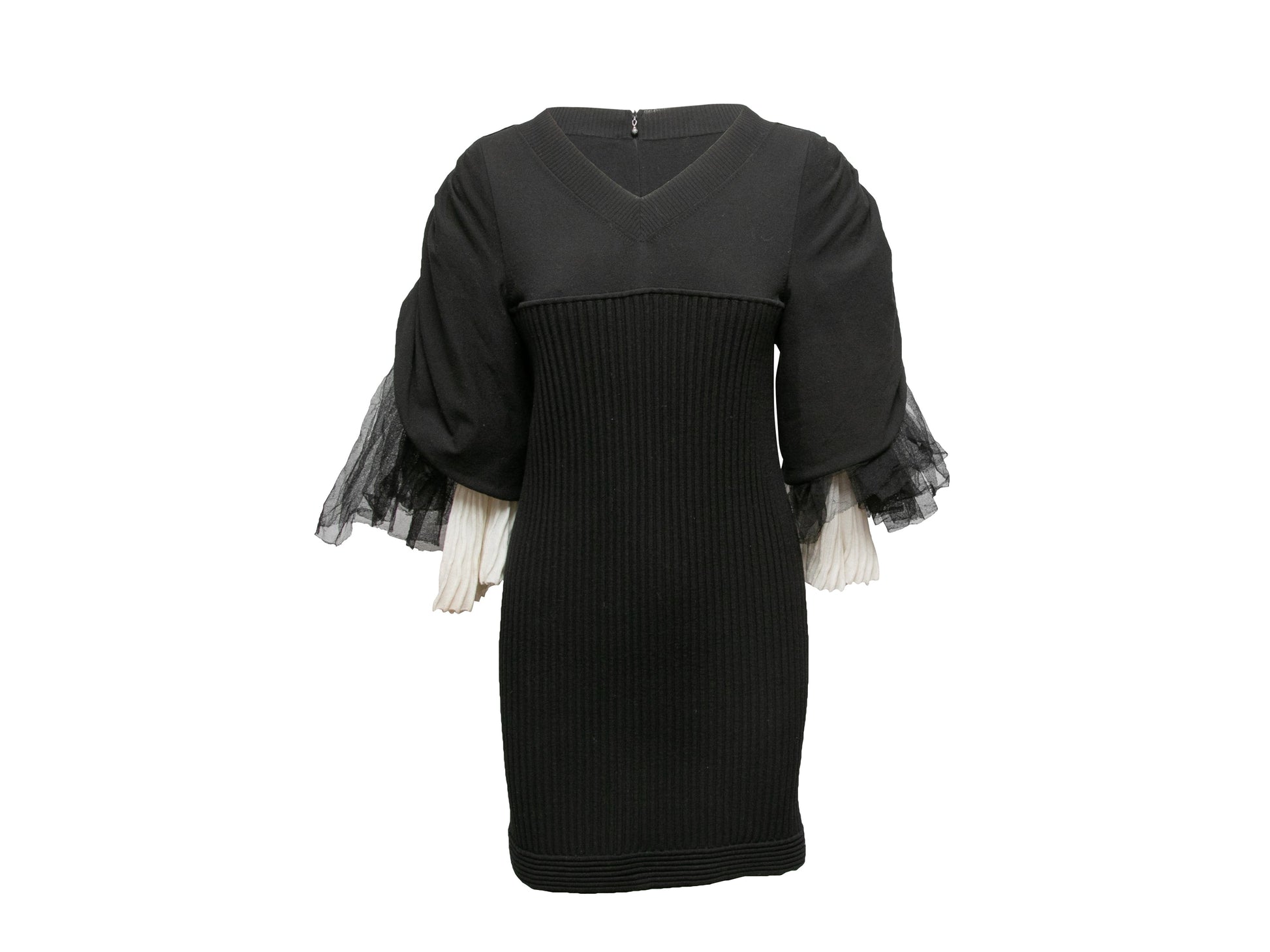 Black & White Chanel Ribbed Tulle-Accented Mini Dress Size FR 42