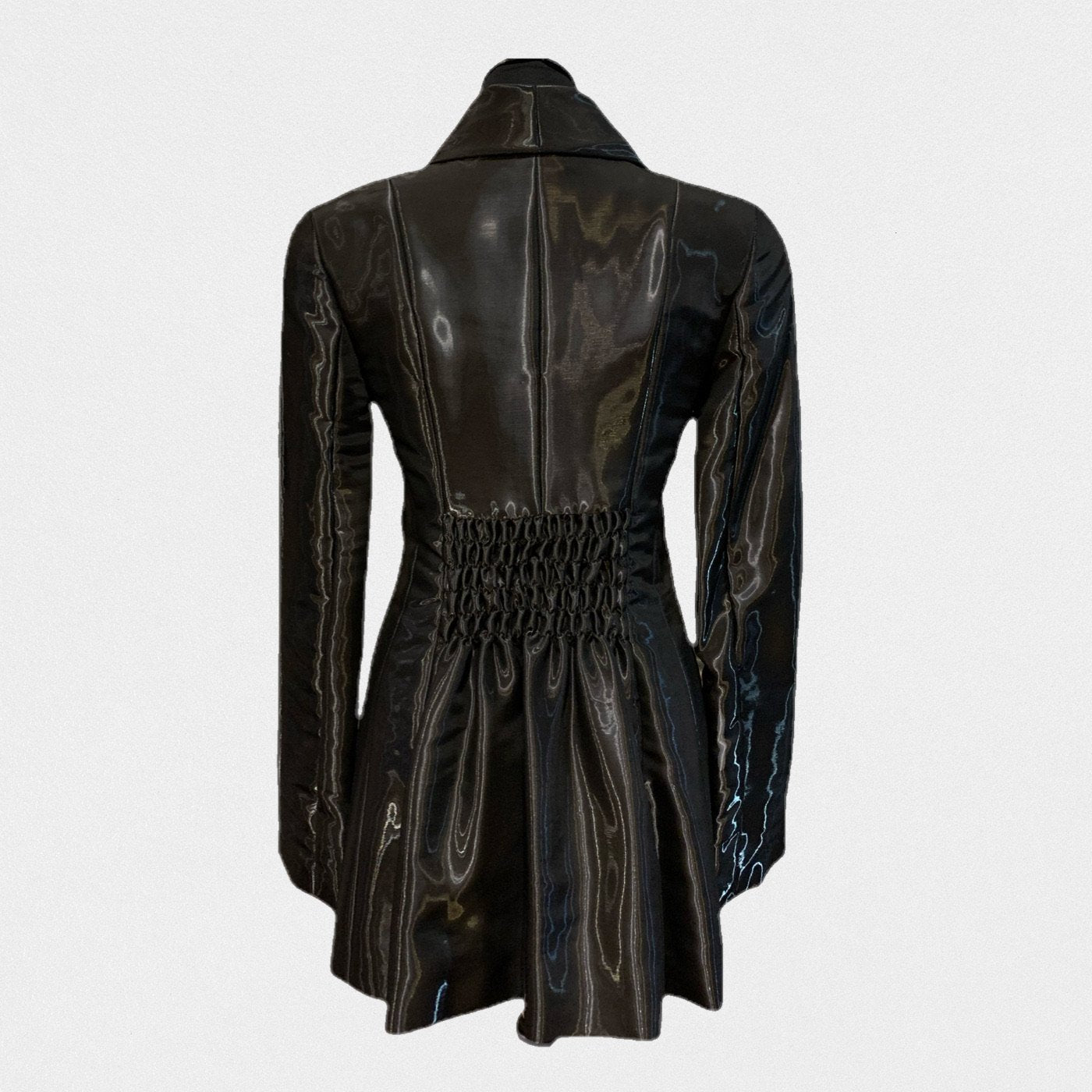 DESCRIPTION:Chanel metallic mid-length blazer with CC logo buttons with strass details, two patch pockets