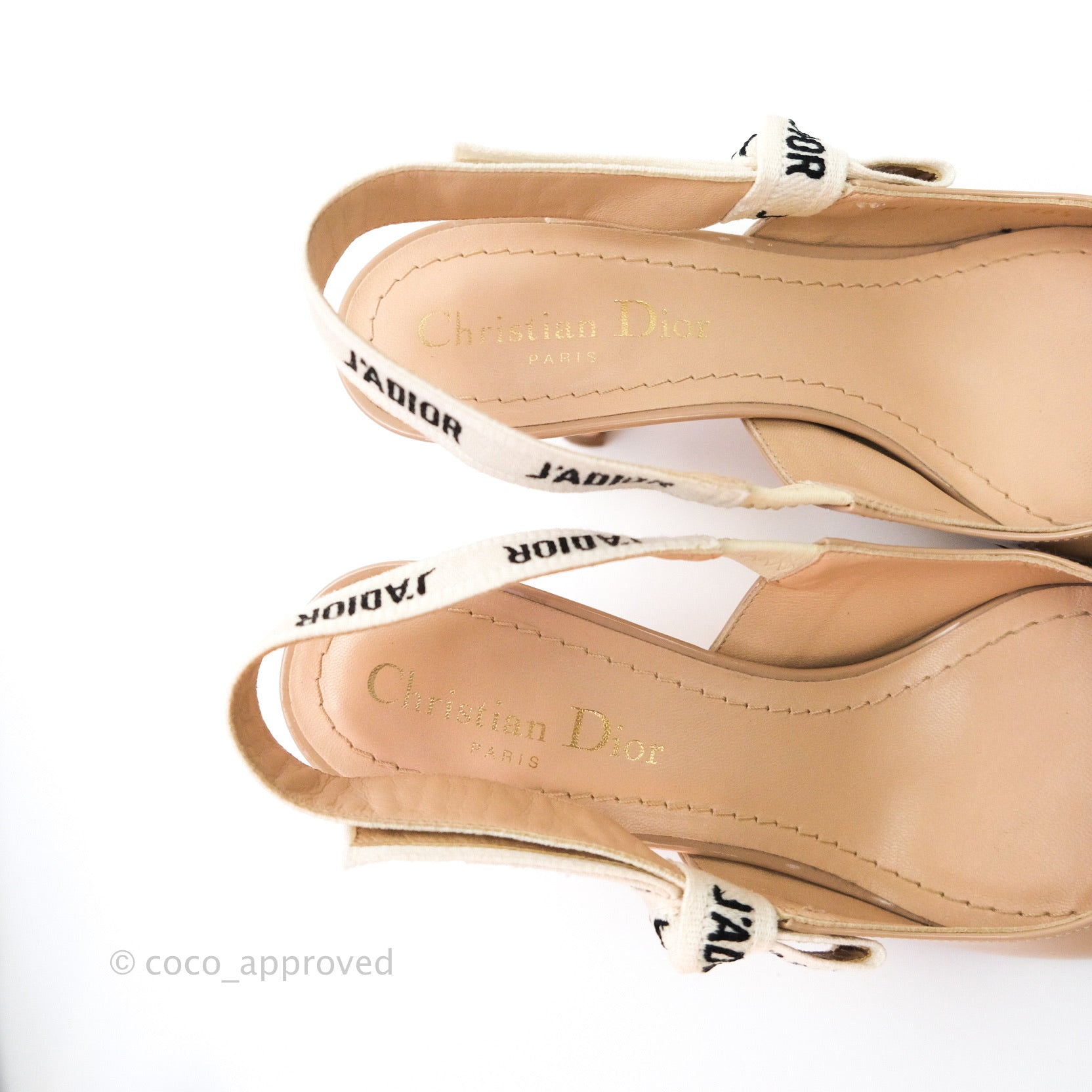 Christian Dior Patent J'adior Ribbon Slingback Pumps 36.5 Beige