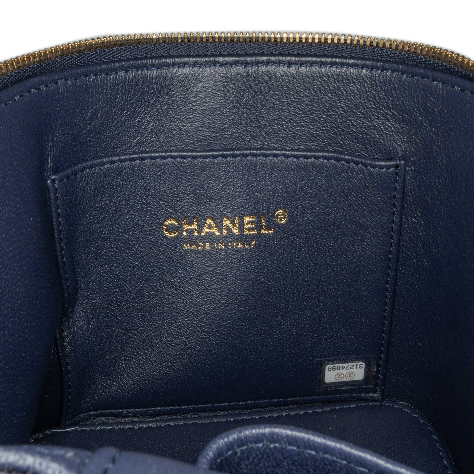 Blue Chanel CC Quilted Caviar Top Handle Vanity Case with Chain