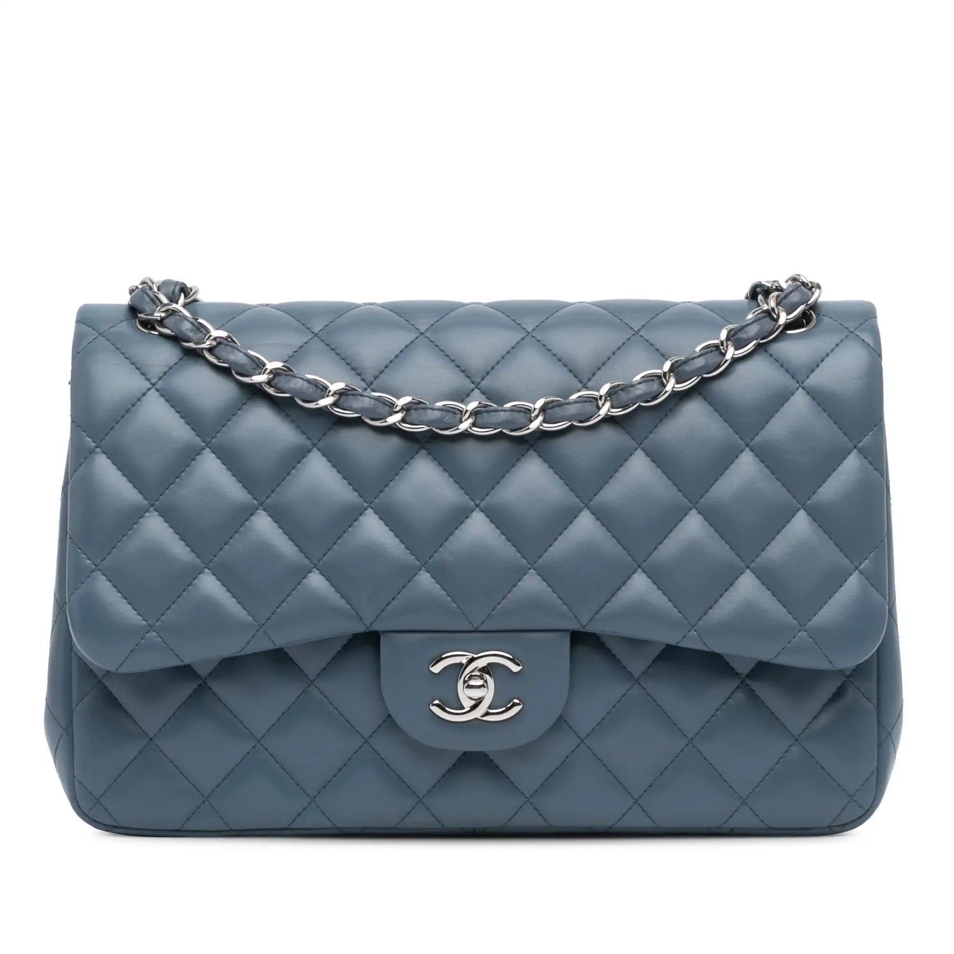 Blue Chanel Jumbo Classic Lambskin Double Flap Shoulder Bag