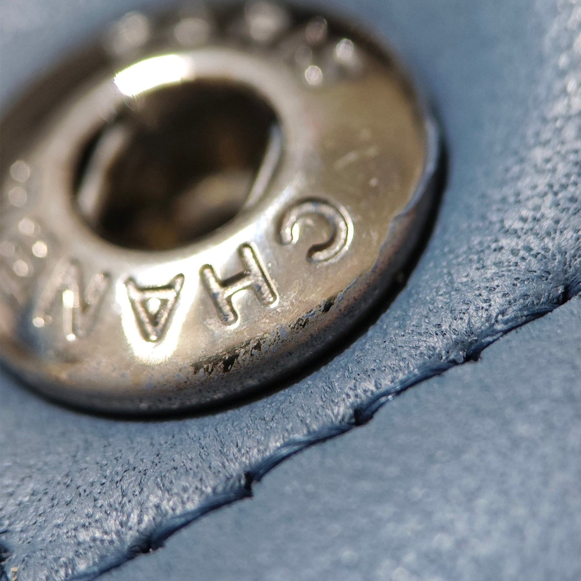 Please note this is a item that may display signs of wear consistent with the condition listed above and shown in photos. Designer Revival this is an Blue Chanel Jumbo Classic Lambskin Double Flap Shoulder Bag or . .