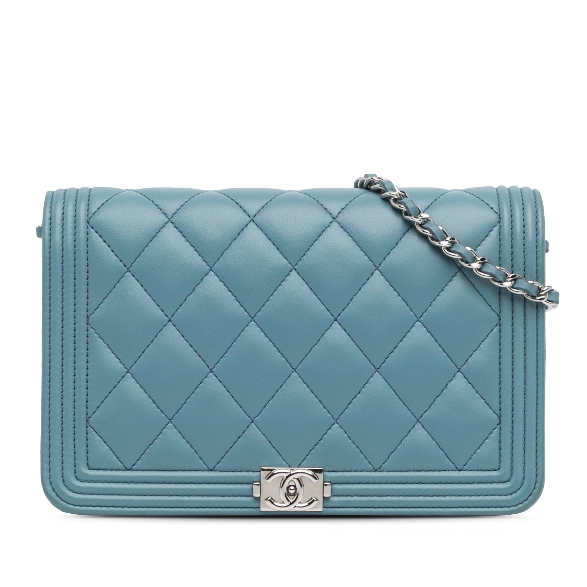 Blue Chanel Lambskin Boy Wallet On Chain Crossbody Bag