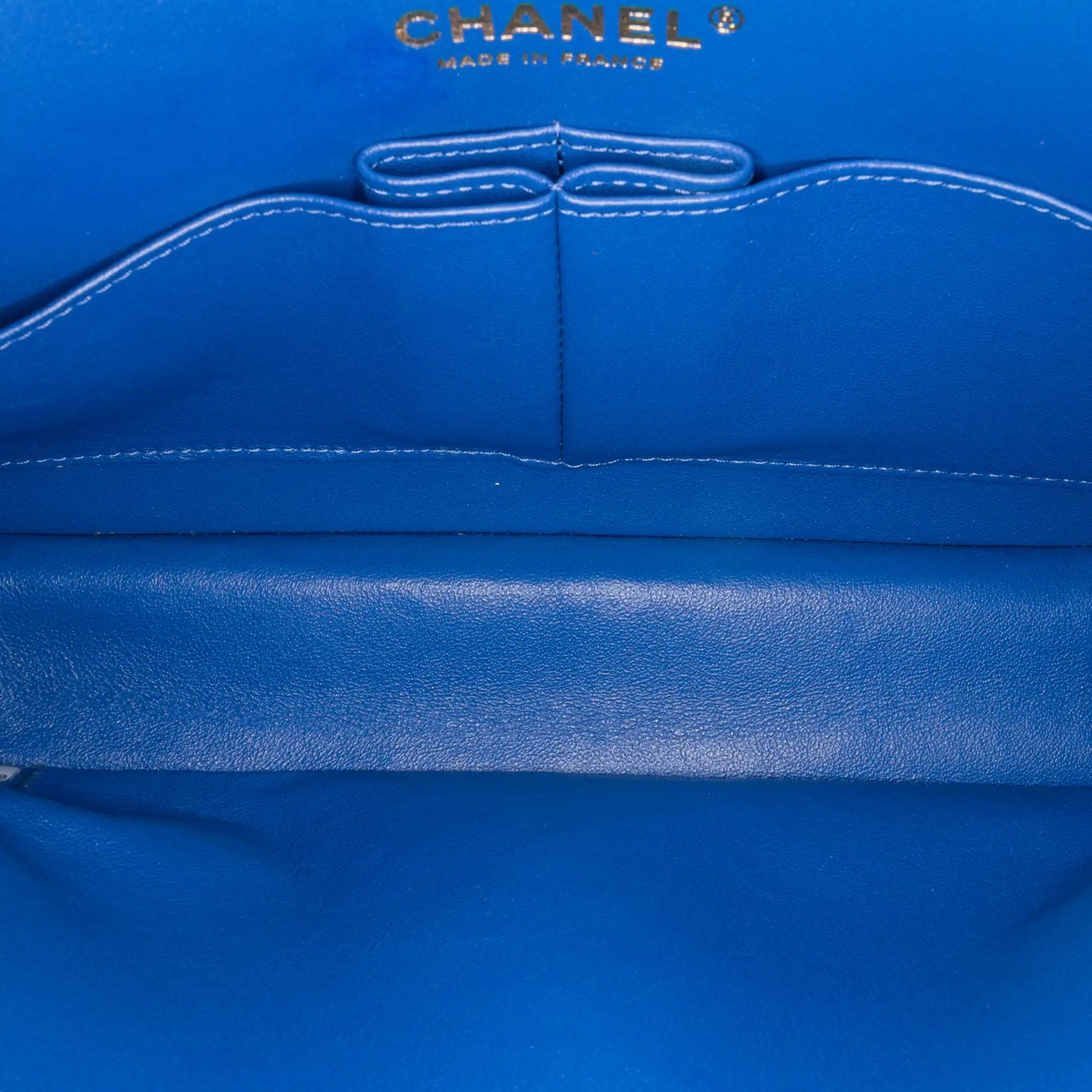 Blue Chanel Medium Classic Chevron Lambskin Double Flap Shoulder Bag