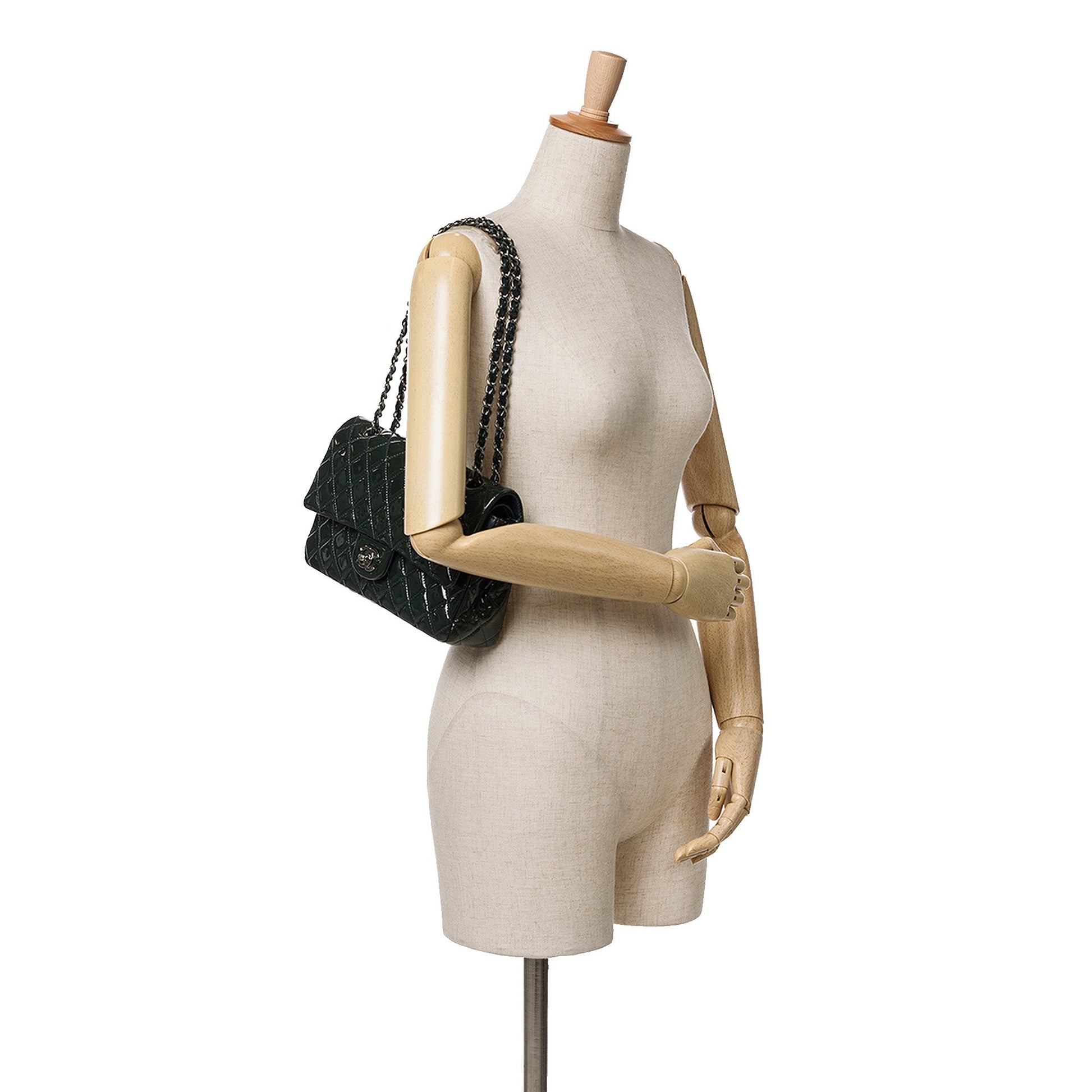 Please note this is a item that may display signs of wear consistent with the condition listed above and shown in photos. Designer Revival this is an Blue Chanel Medium Classic Patent Double Flap Shoulder Bag or . .