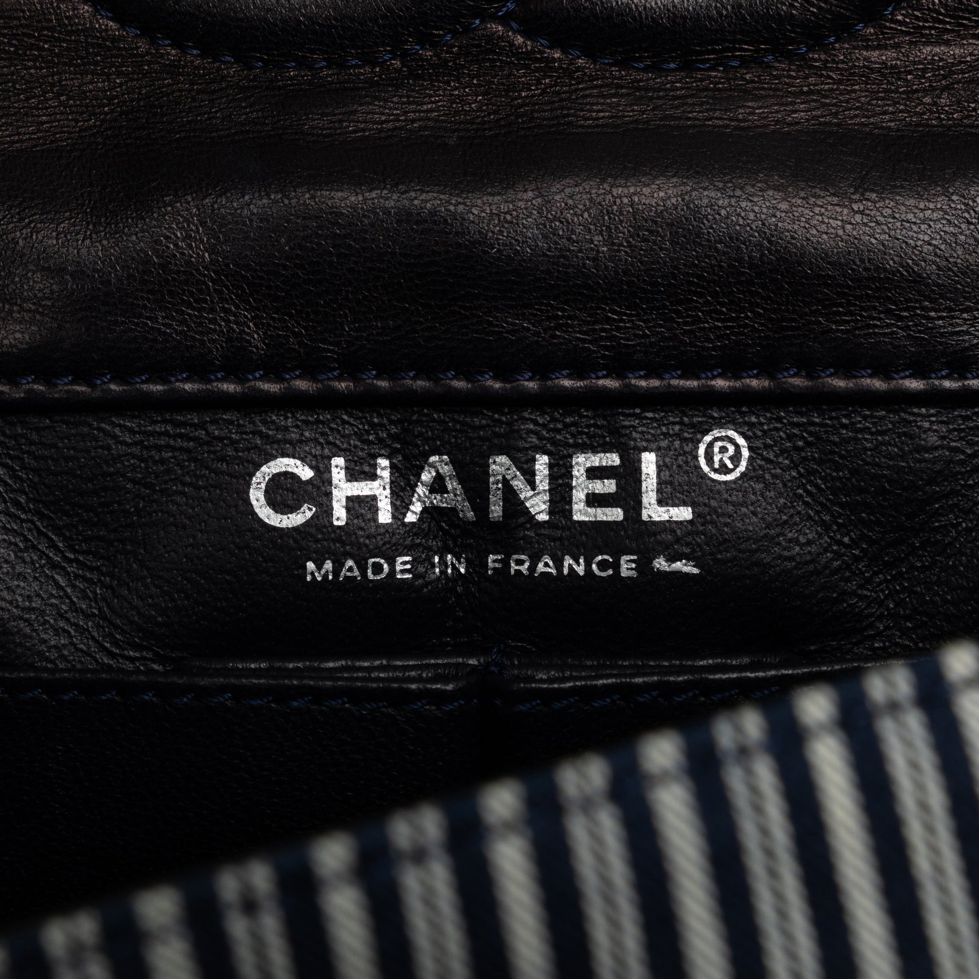 Please note this is a item that may display signs of wear consistent with the condition listed above and shown in photos. Designer Revival this is an Blue Chanel Medium Cotton Striped Double Flap Shoulder Bag or . .