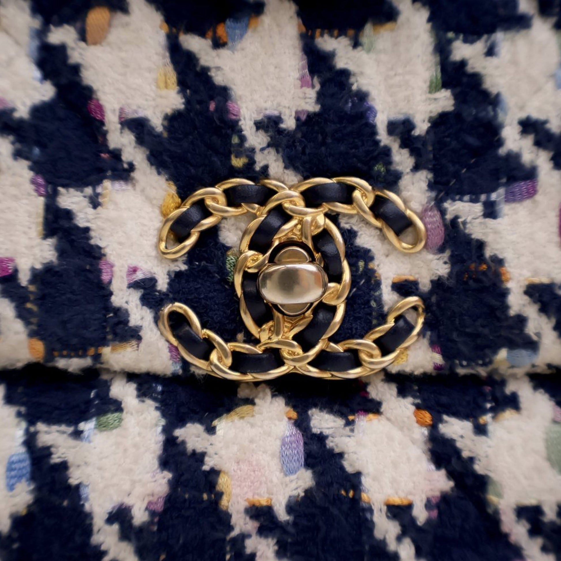 Please note this is a item that may display signs of wear consistent with the condition listed above and shown in photos. Designer Revival this is an Blue Chanel Medium Houndstooth Tweed 19 Flap Bag Satchel or . .