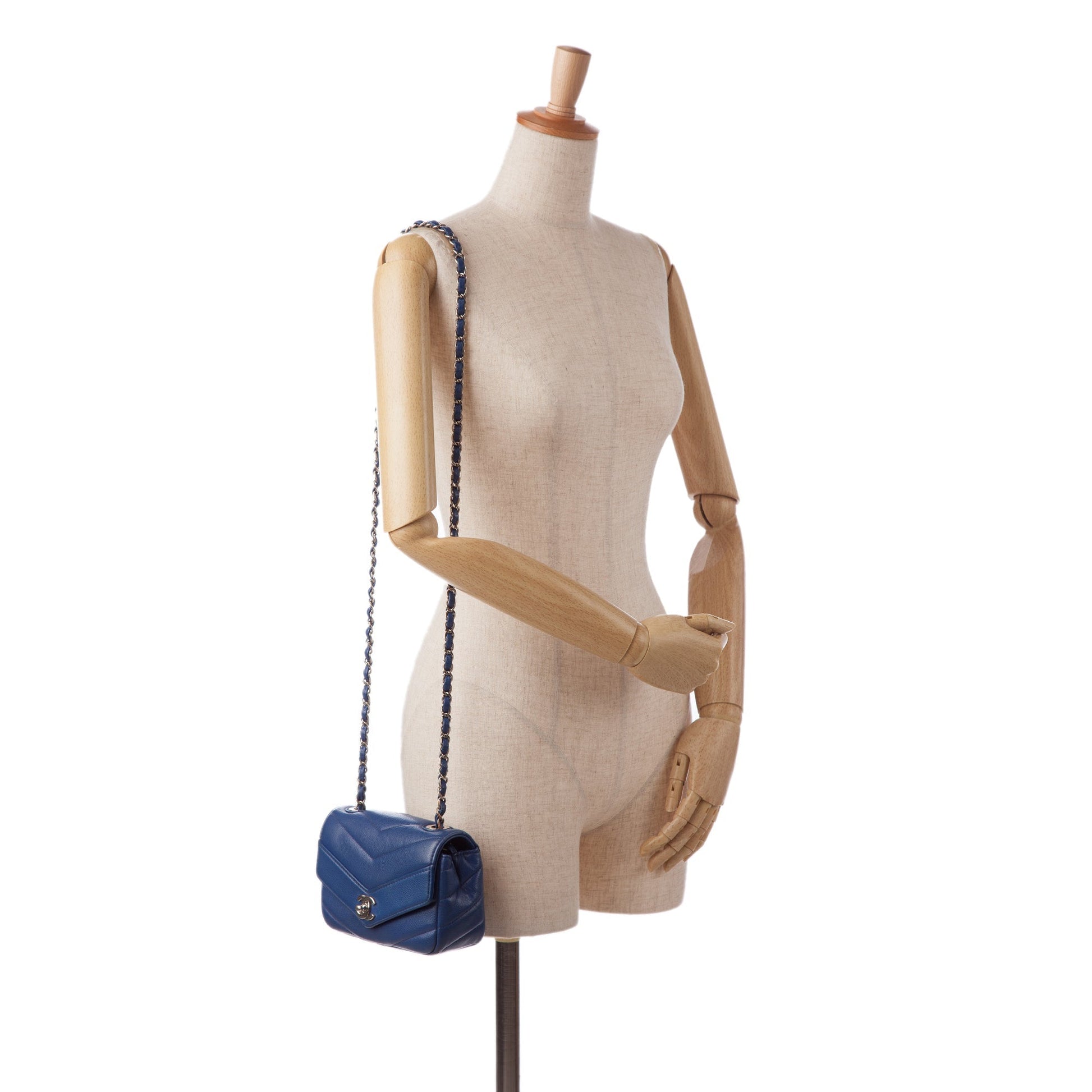Blue Chanel Mini Caviar Chevron Data Center Envelope Flap Bag