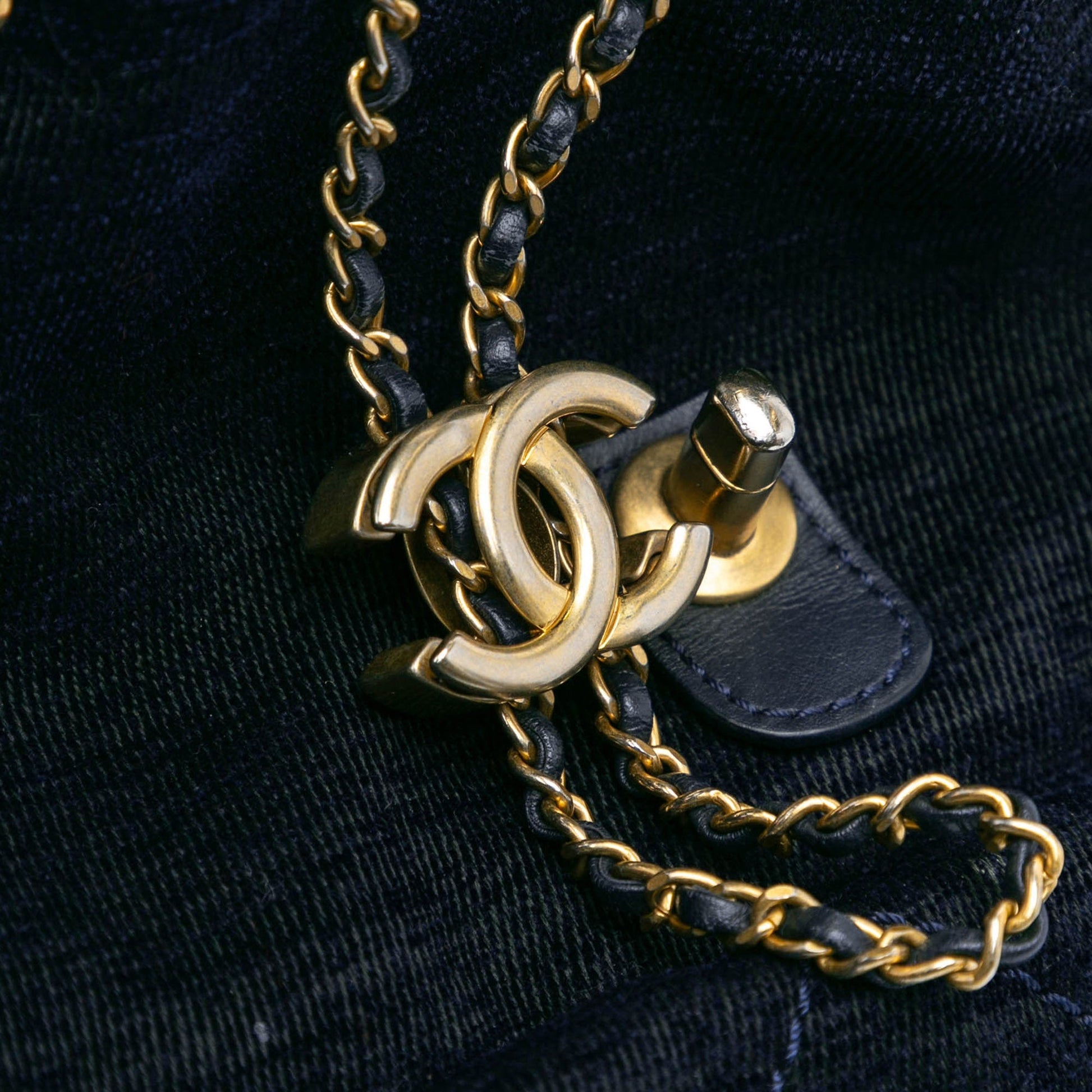 Product Details: Blue Chanel Paris-Cosmopolite Velvet Parisian Stroll Backpack. This backpack features a quilted velvet body, a flat leather top handle, adjustable flat back straps, a top flap with CC turn lock and drawstring closure, exterior front flap pockets, and interior zip and slip pockets. 11.4" L x 11.4" W x 3.1" D, 2.8" drop. Serial number 24406076.