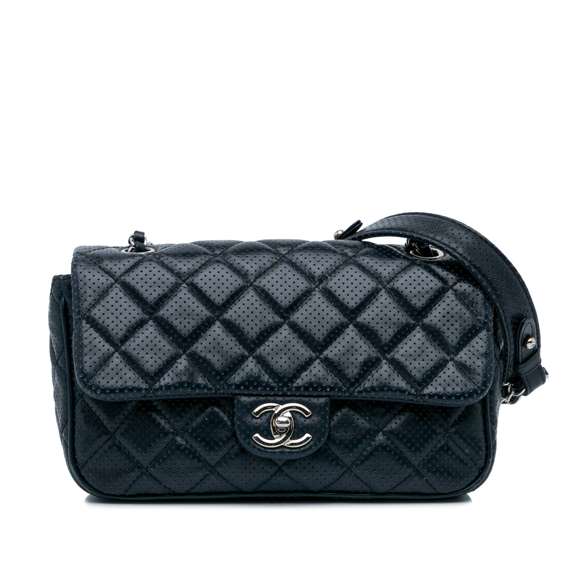 Please note this is a item that may display signs of wear consistent with the condition listed above and shown in photos. Designer Revival this is an Blue Chanel Perforated Classic Mini Rectangular Flap Shoulder Bag or . .