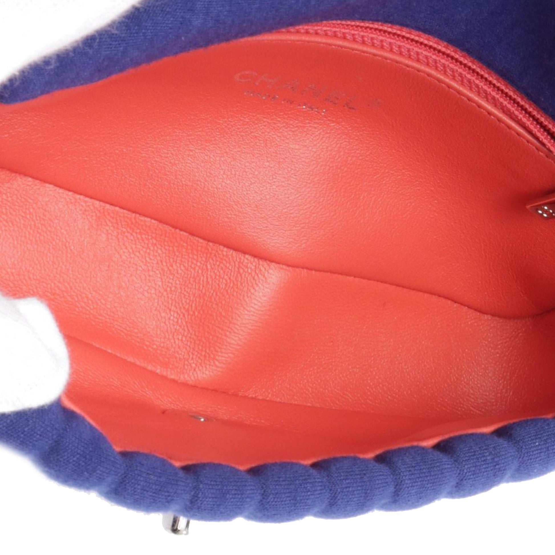 Product Details: Blue Chanel Quilted Jersey Mademoiselle Flap Crossbody Bag. This flap bag features a quilted jersey body, a leather-woven chain strap with leather guard, a front flap with CC turn-lock closure, and an interior zip pocket. 5.1" L x 8.1" W x 1.8" D. Serial number 22314468.