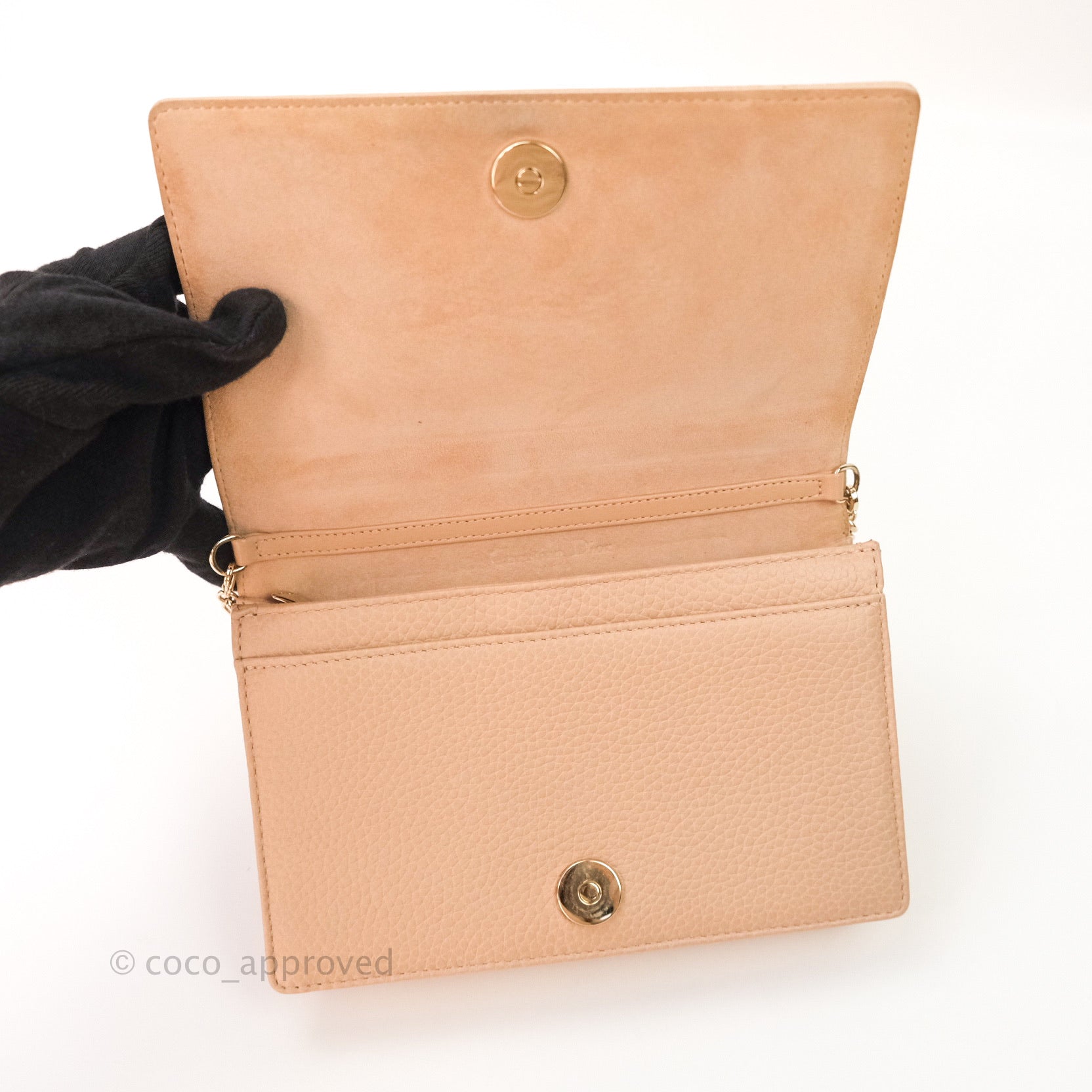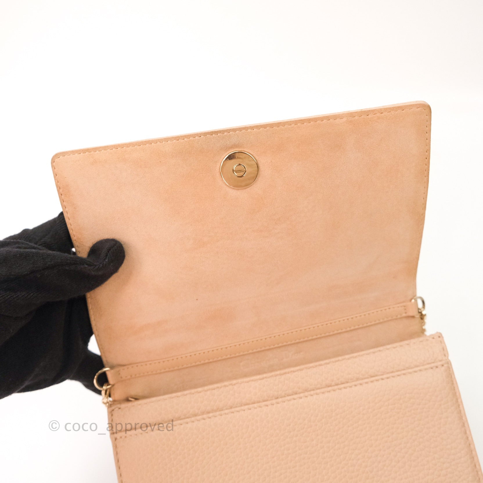 Christian Dior Diorama Wallet on Chain Beige Grained Calfskin Gold Hardware