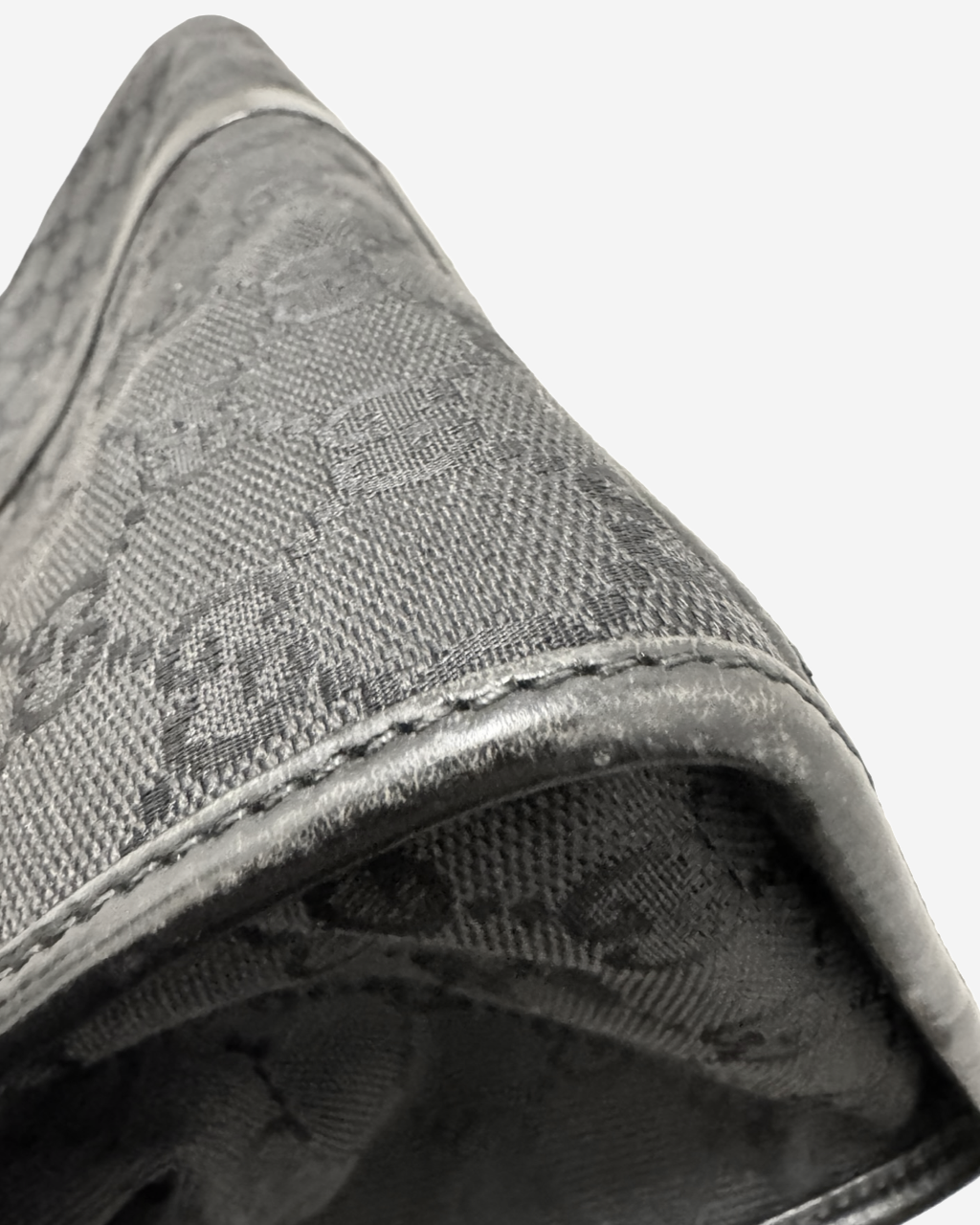 • Descripcin: Bolsa de hombro en canvas con detalles en piel color negro, broche frontal caracterstico en color plateado, forro interior en canvas, hardware color plateado
