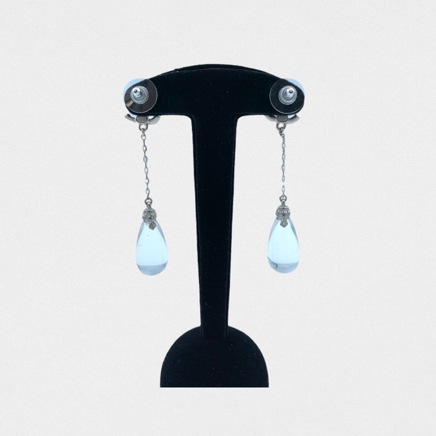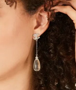 DESCRIPTION: Chanel pendant earrings with transparent water drops pendants (6cm long)