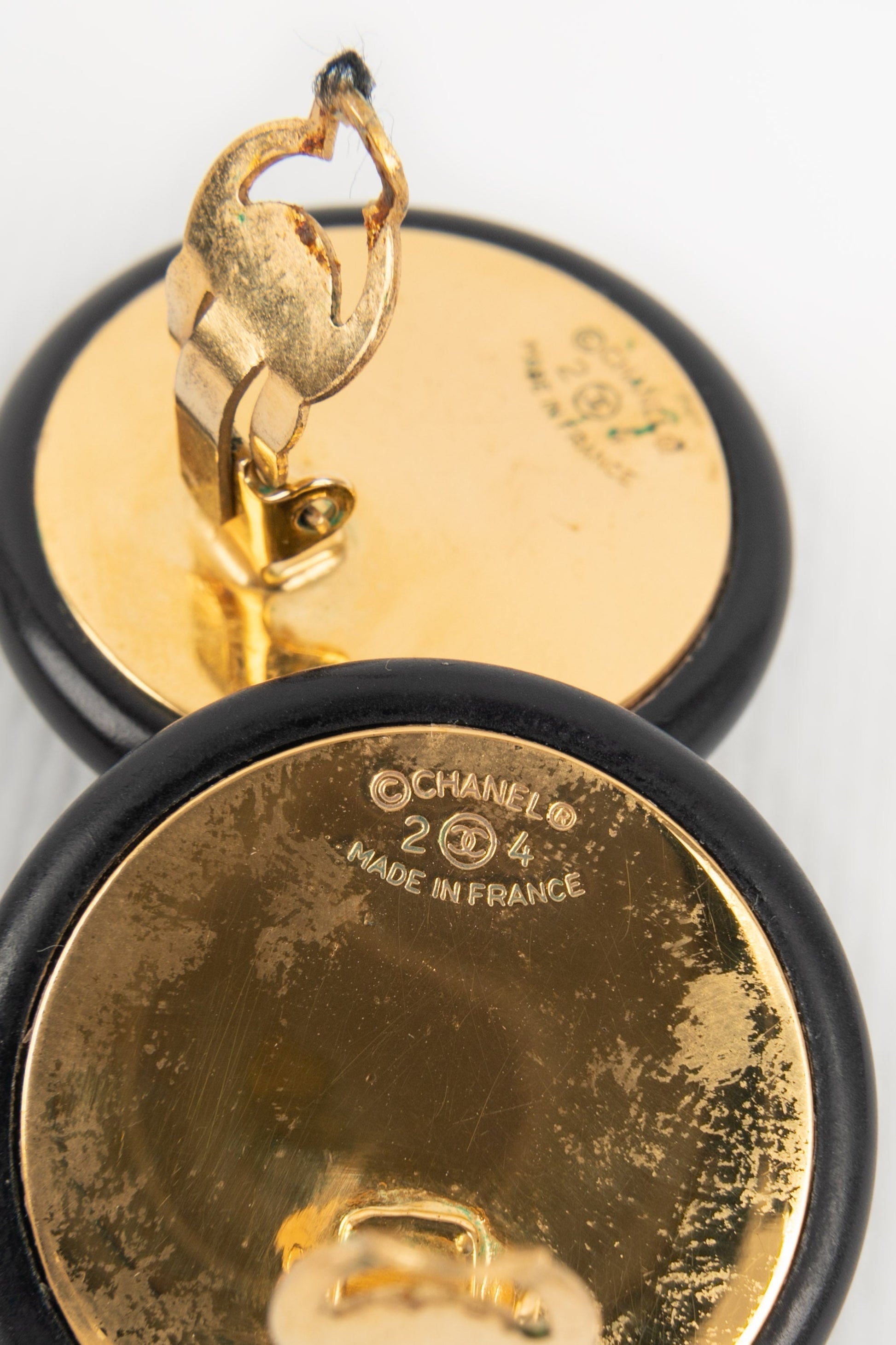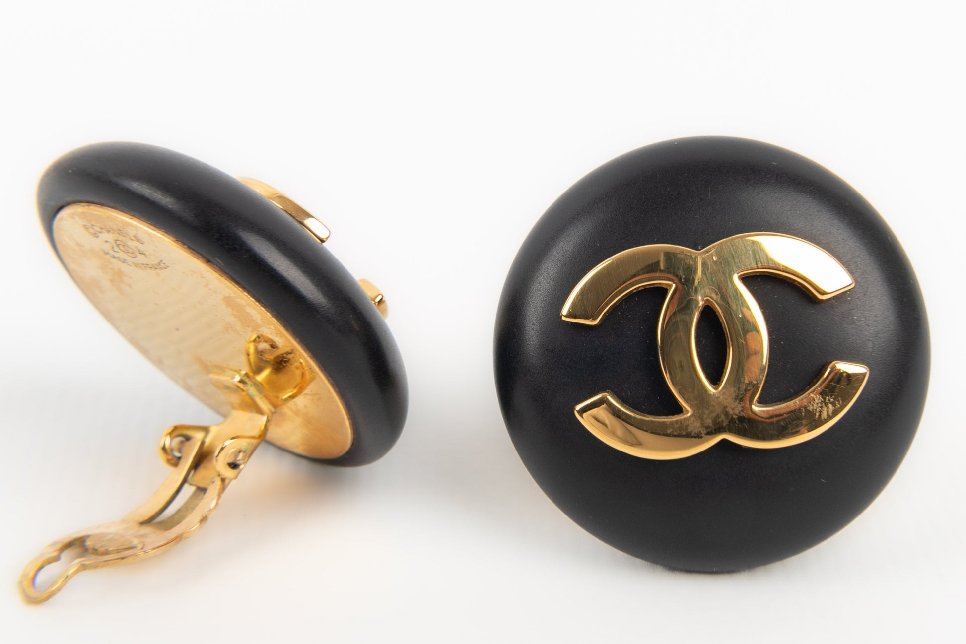 CHANEL - (Made in France) Boucles d'oreilles clips en mtal dor et bakelite surmontes d'un logo cc. Collection 2cc4.