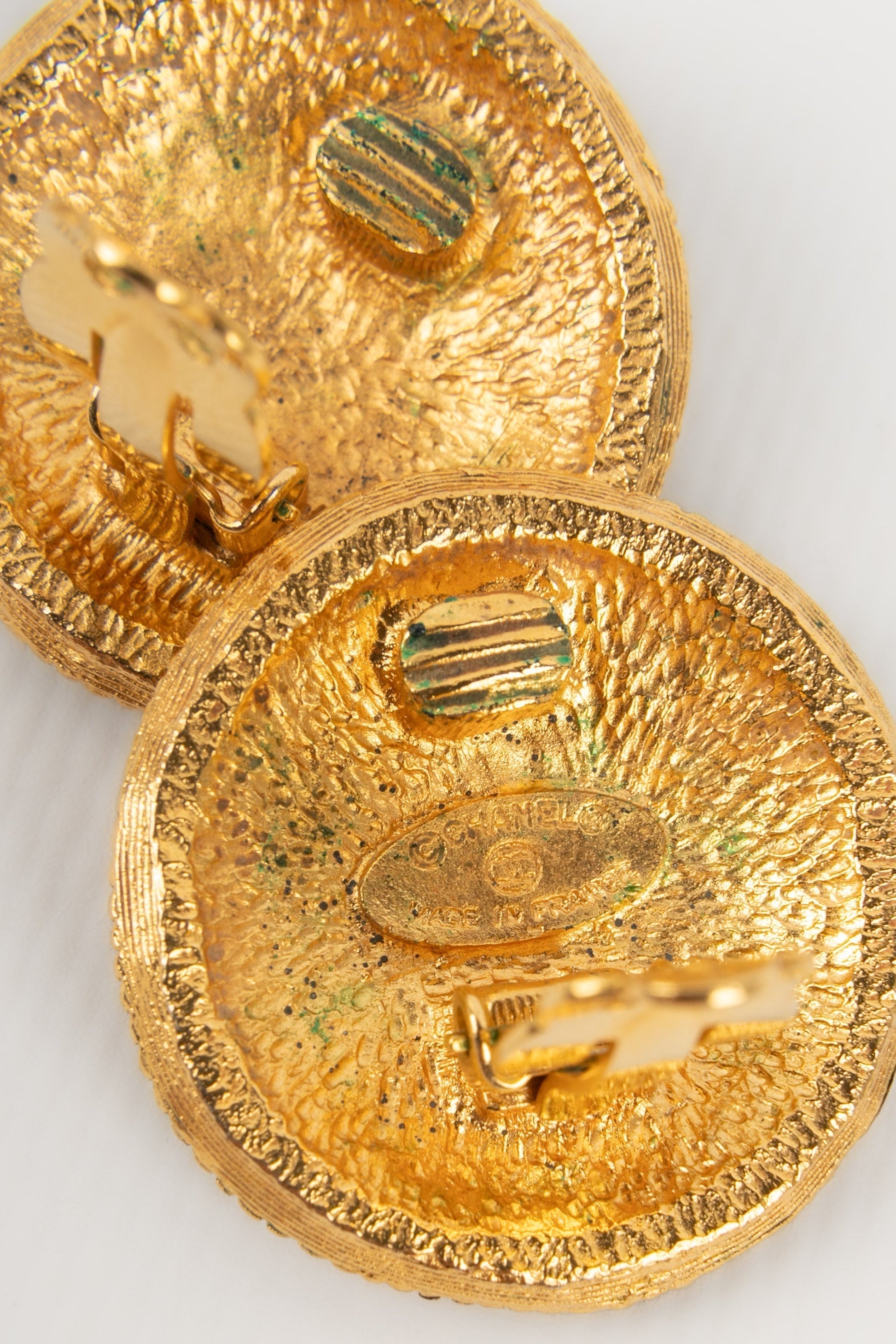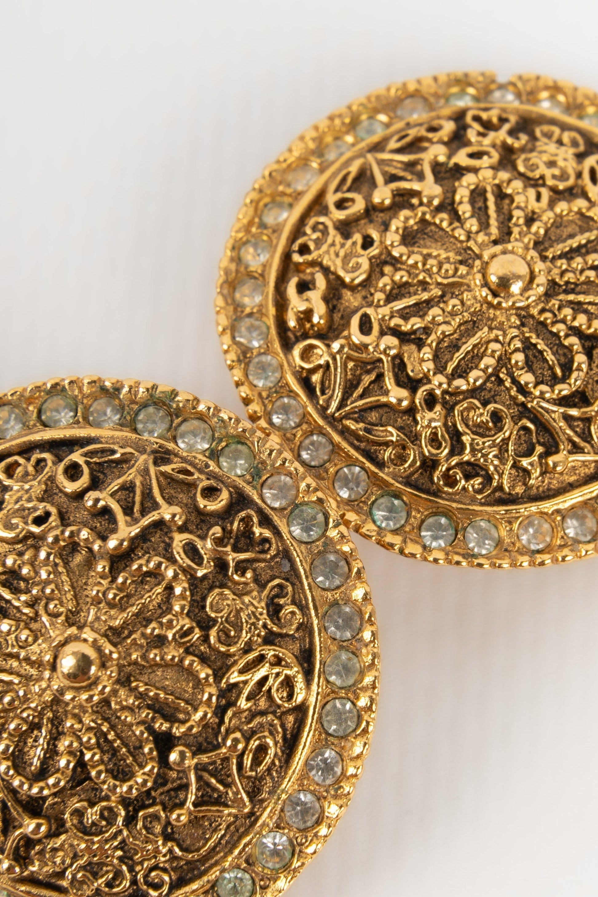 CHANEL - (Made in France) Boucles d'oreilles clips en mtal dor paves de strass de Swarovski.
