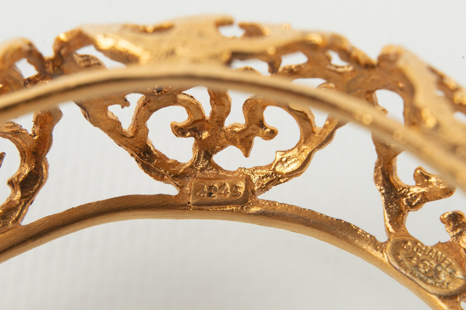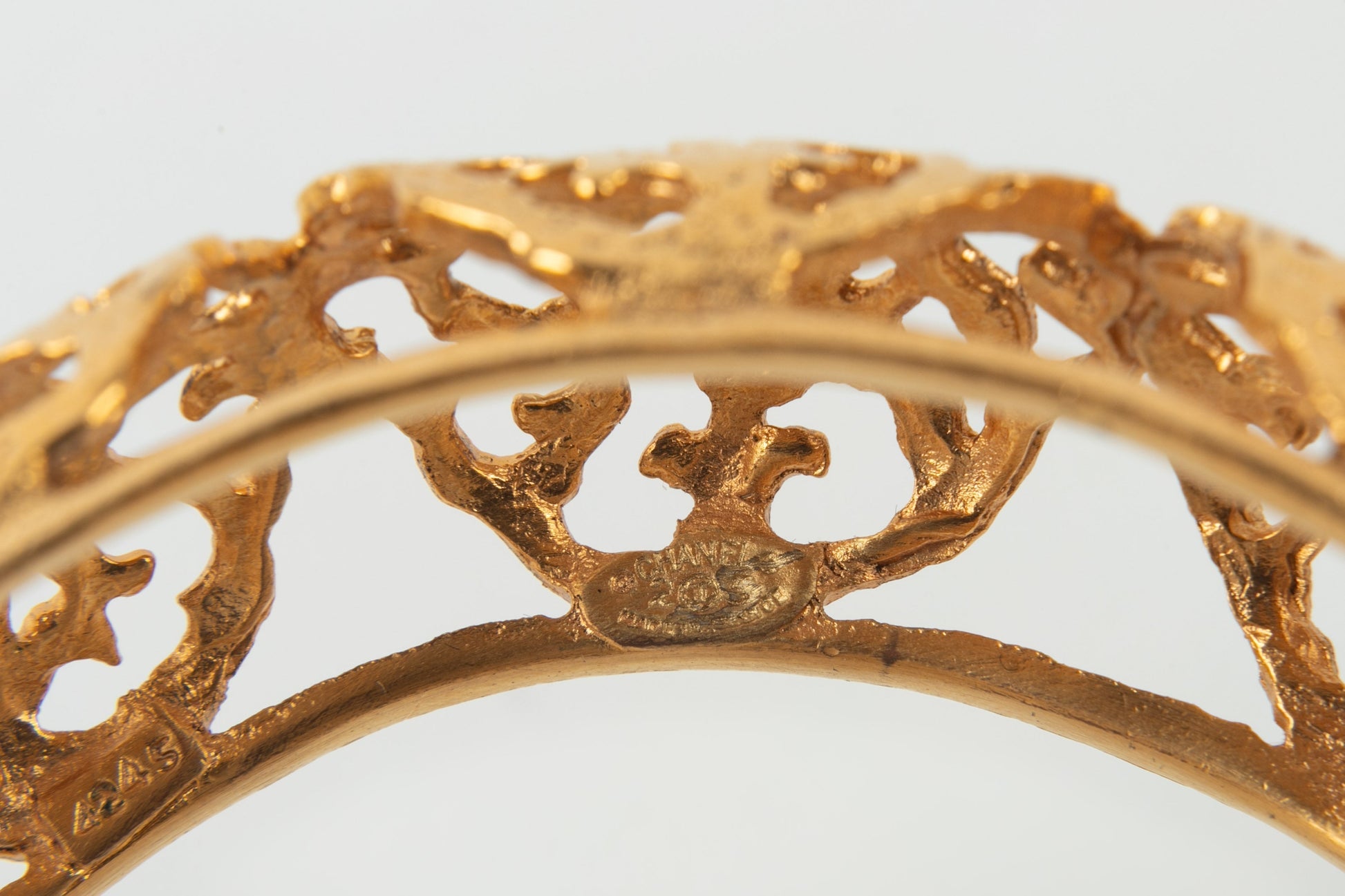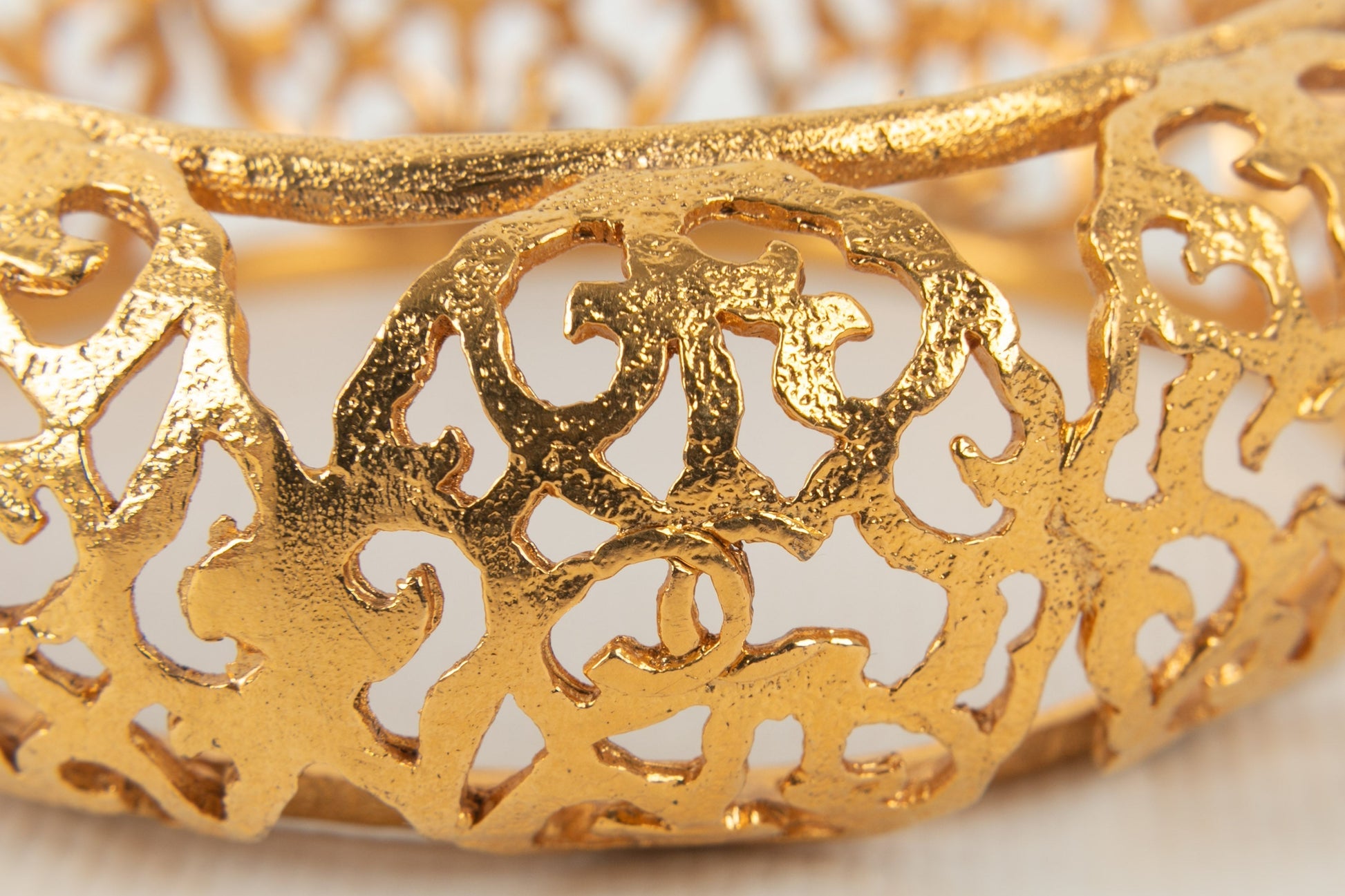 CHANEL - Bracelet en mtal dor ajour.