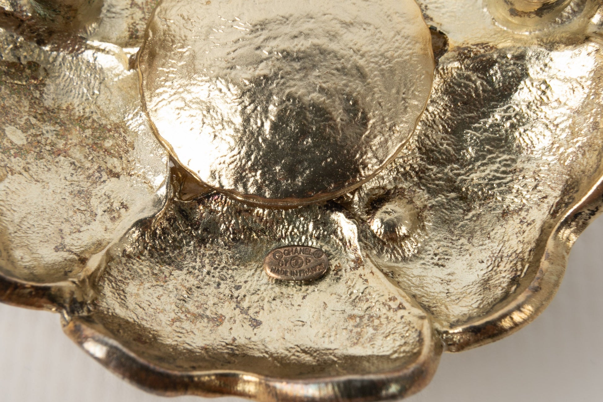 CHANEL -(Made in France) Broche pendentif camlia en mtal dor et mail beige. Collection Printemps-Et 2007.