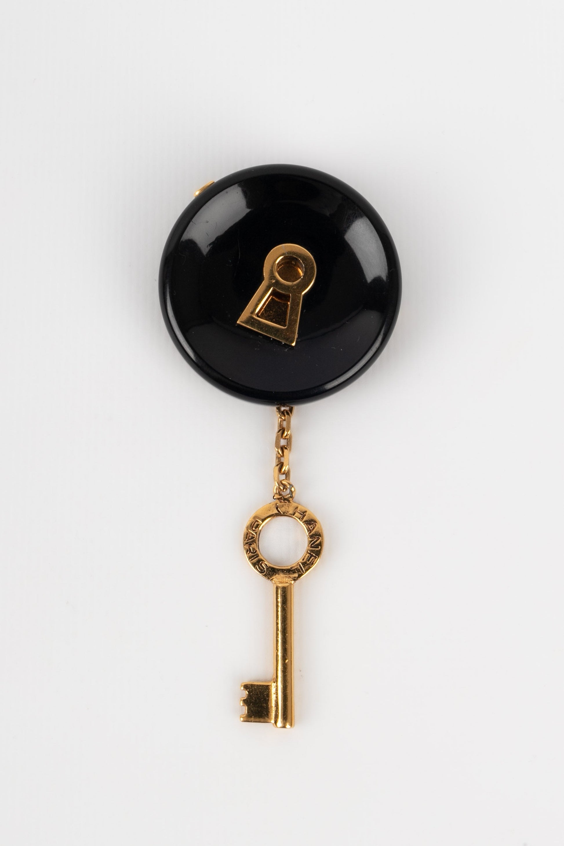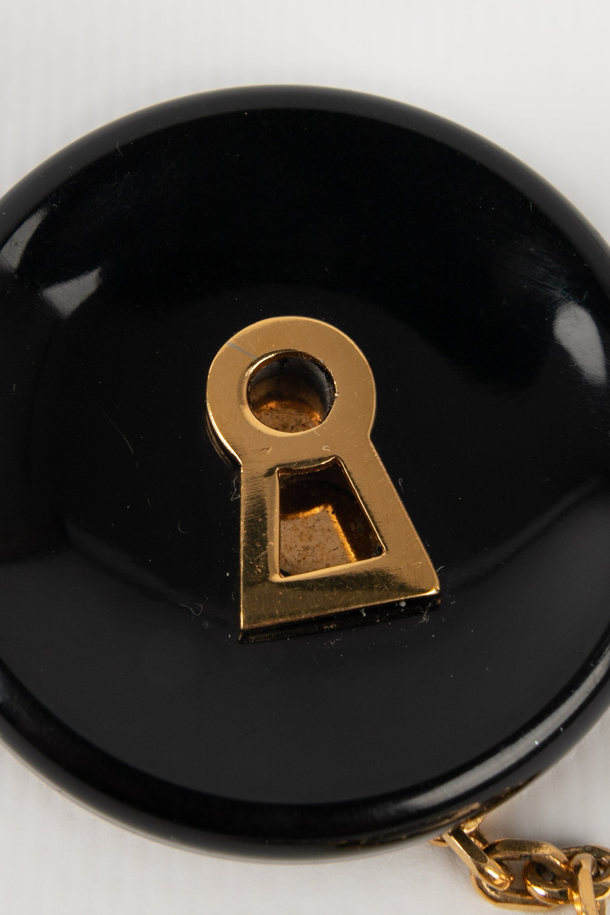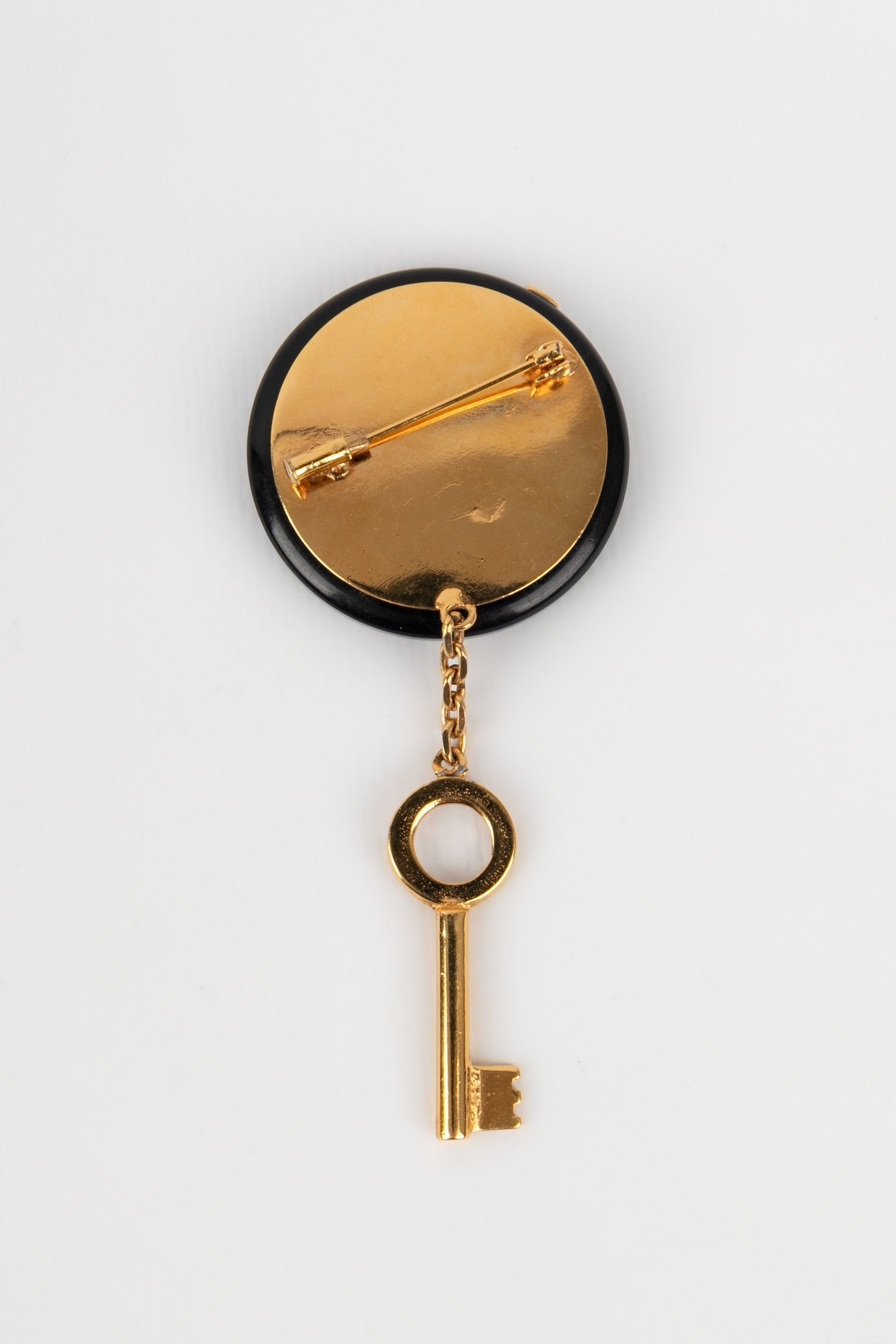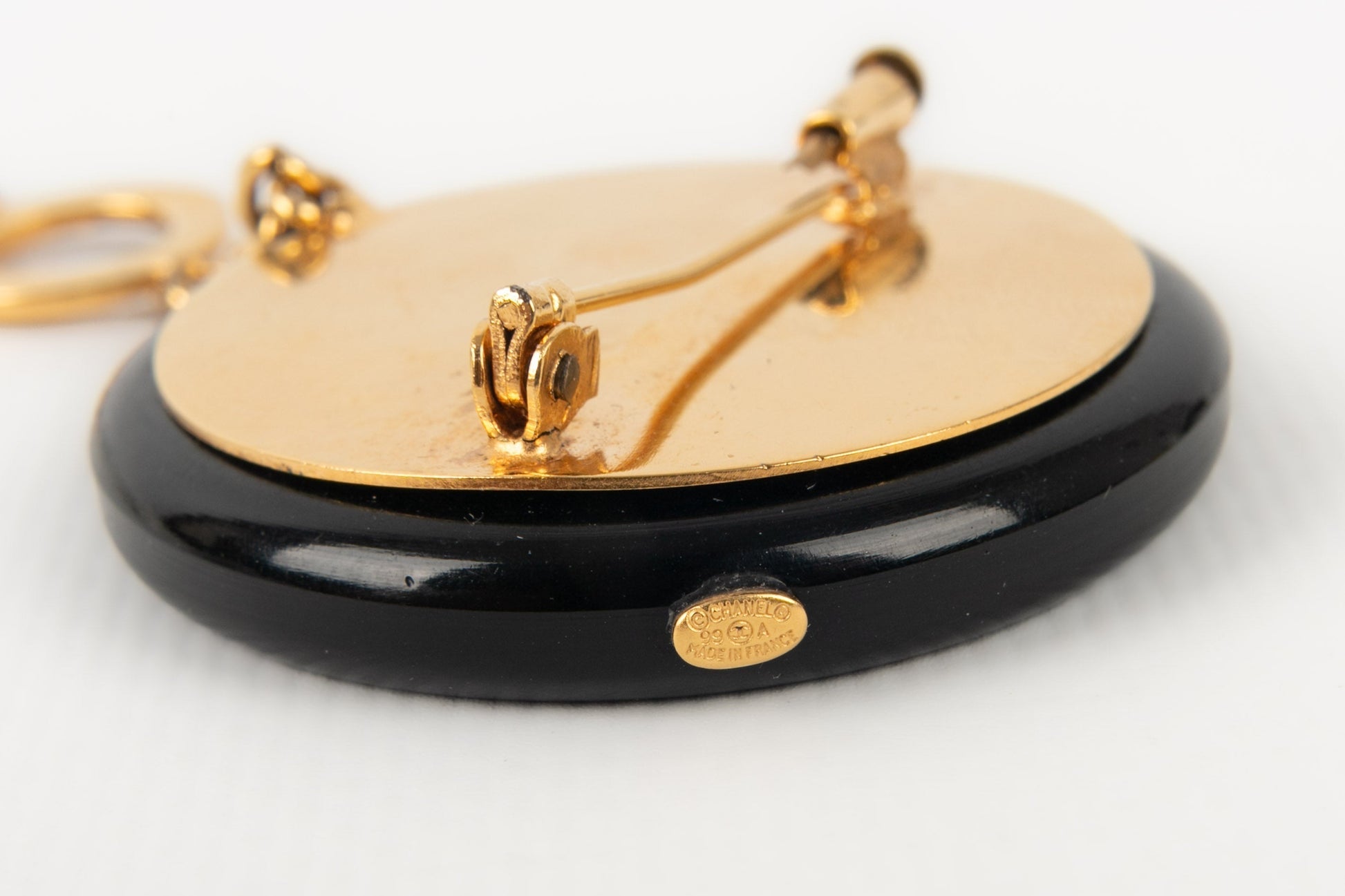 CHANEL - (Made in France) Broche en baklite noire et mtal dor. Collection Automne-Hiver 1999.