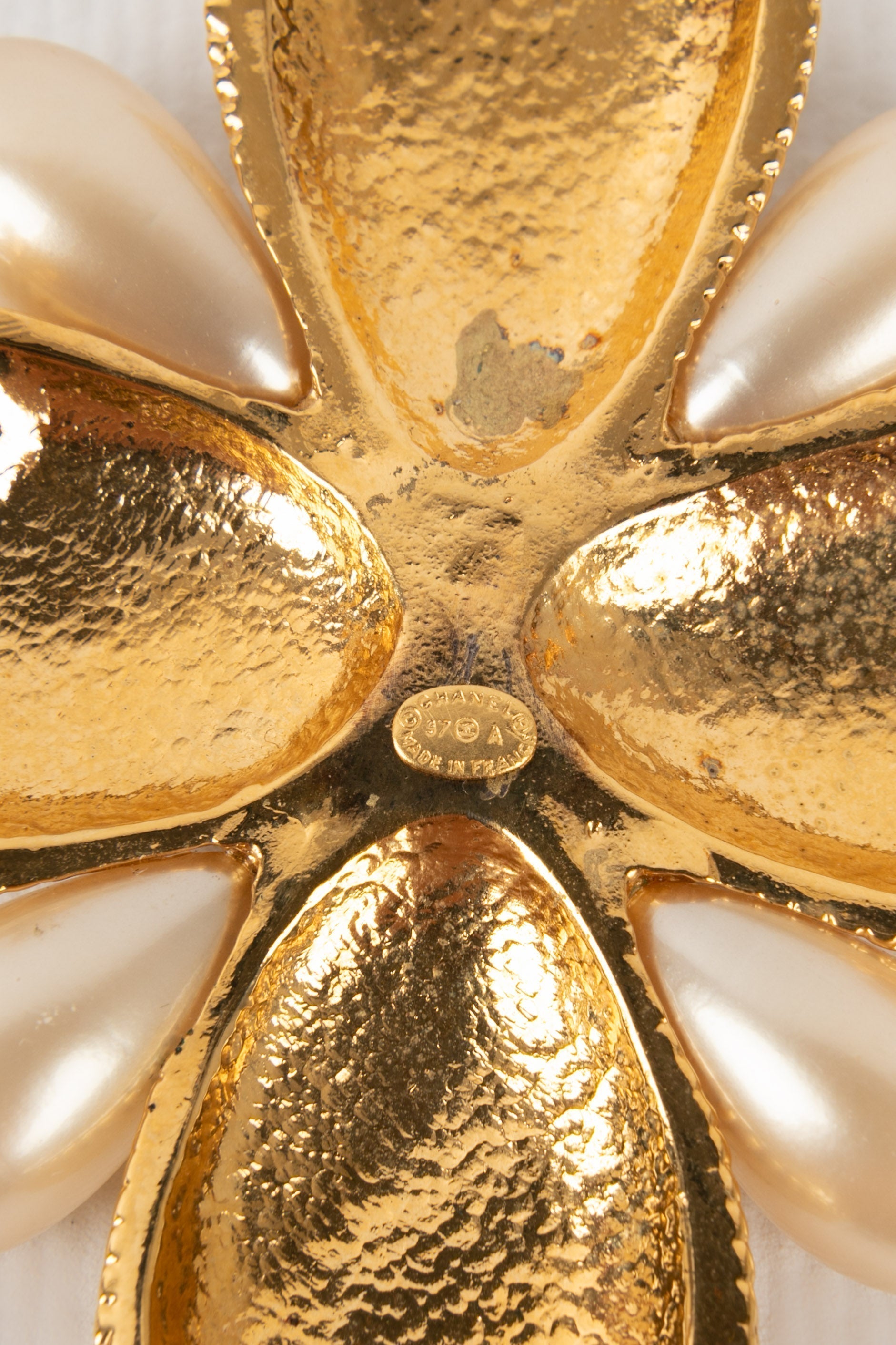 CHANEL - (Made in France) Broche en mtal dor et gouttes nacres fantaisies. Collection Automne-Hiver 1997.