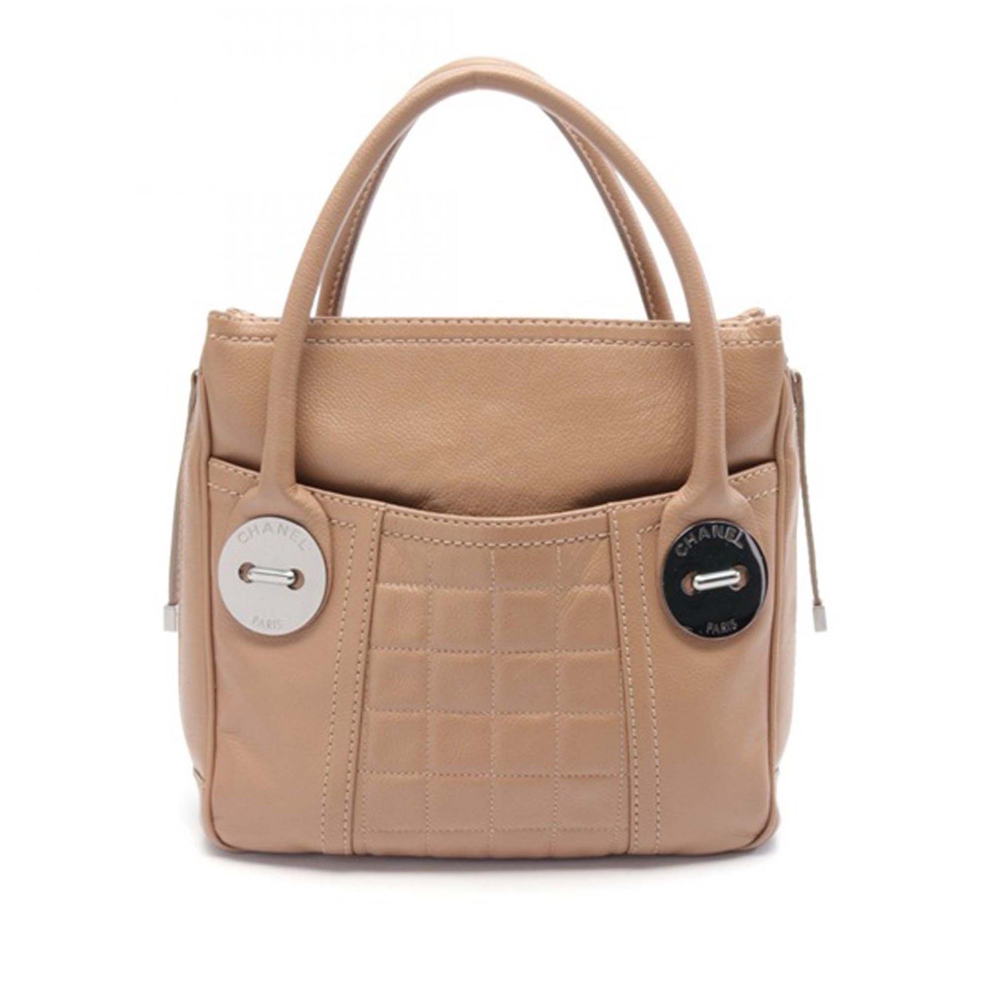 Product Details: Brown Chanel Caviar Button Handbag. This handbag features quilted caviar leather body, rolled leather handles, top zip closure, exterior slip pocket, and an interior zip pocket. 9.1" L x 9.4" W x 3.1" D, 7.5" drop. Serial number 9021053.
