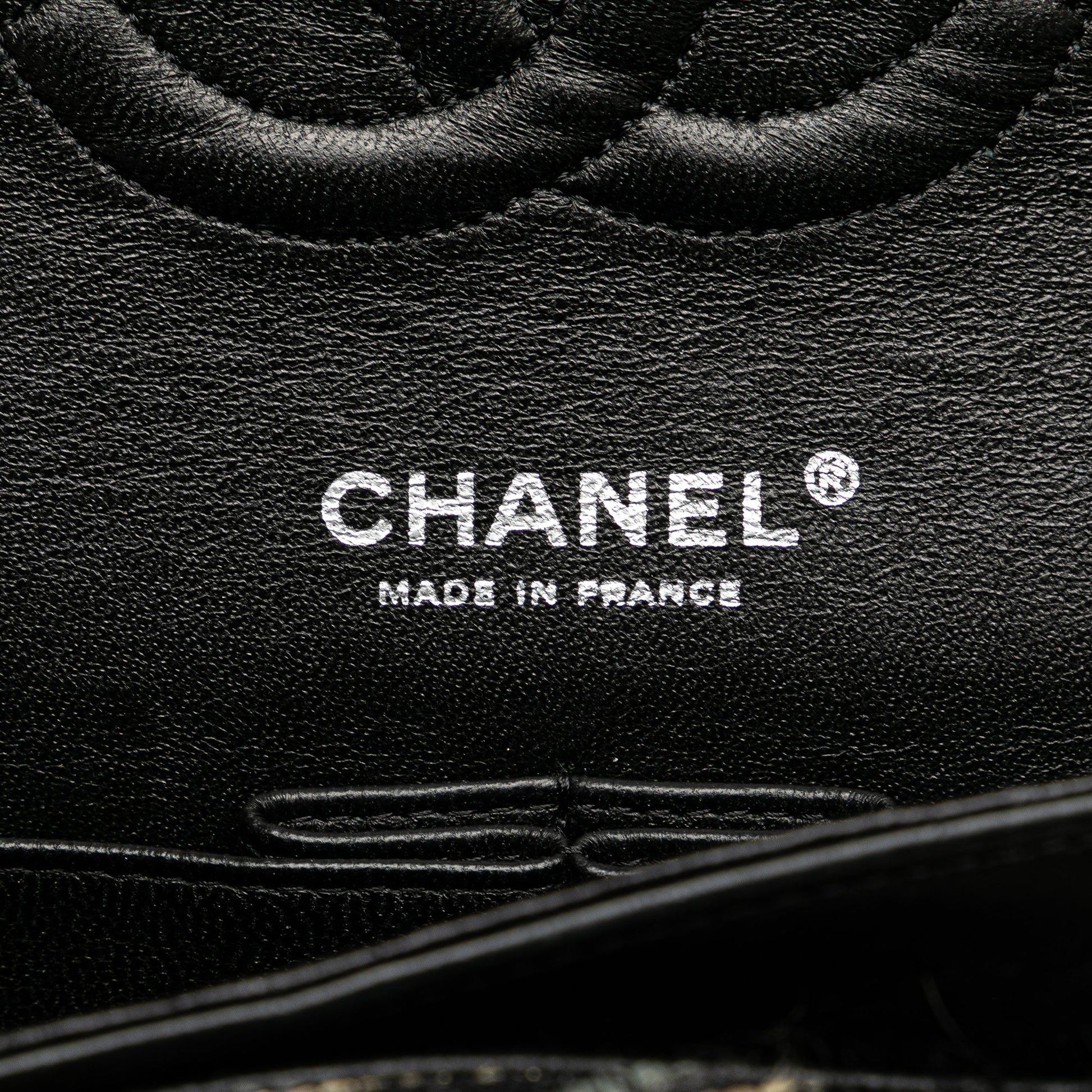 Product Details: Brown Chanel Medium Classic Tweed Double Flap Shoulder Bag. This shoulder bag features a tweed body, leather woven chain straps, front double flaps with a CC logo turn lock closure, an exterior back slip pocket, and interior zip and slip pockets. 5.9" L x 9.8" W x 2.8" D. Serial number 10299111.