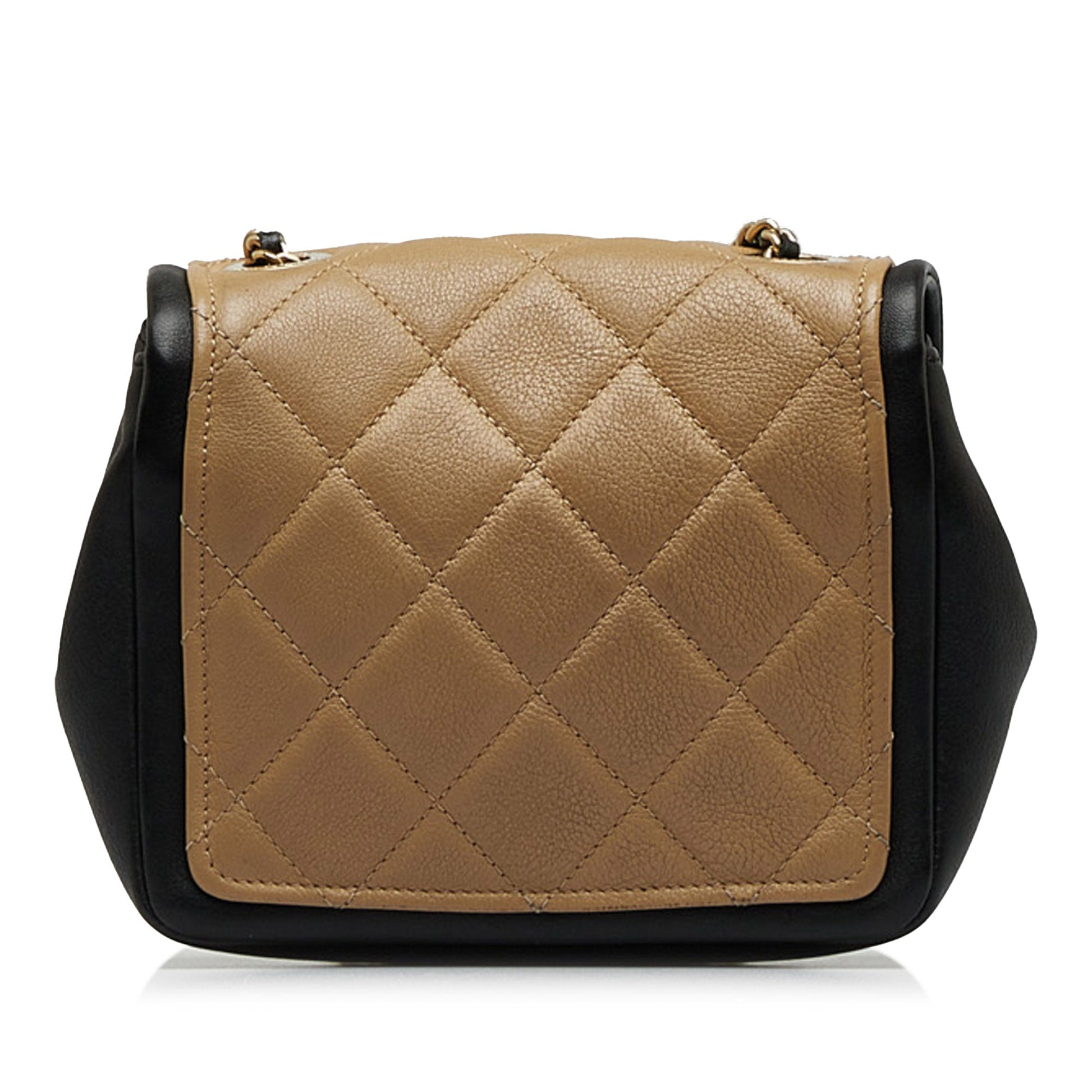 Brown Chanel Mini Square Calfskin Graphic Flap Crossbody Bag