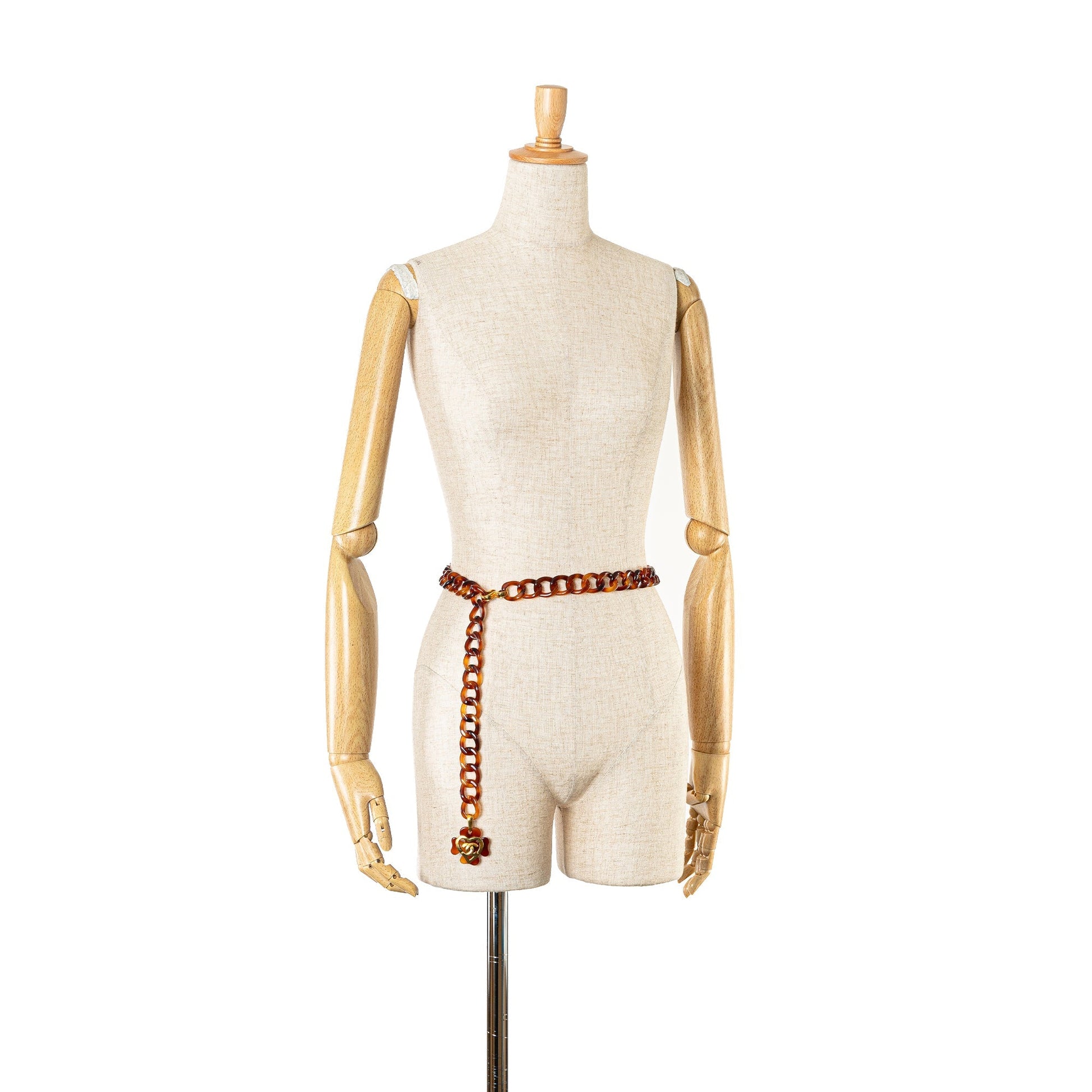 Brown Chanel Tortoise Shell CC Clover Heart Chain Belt