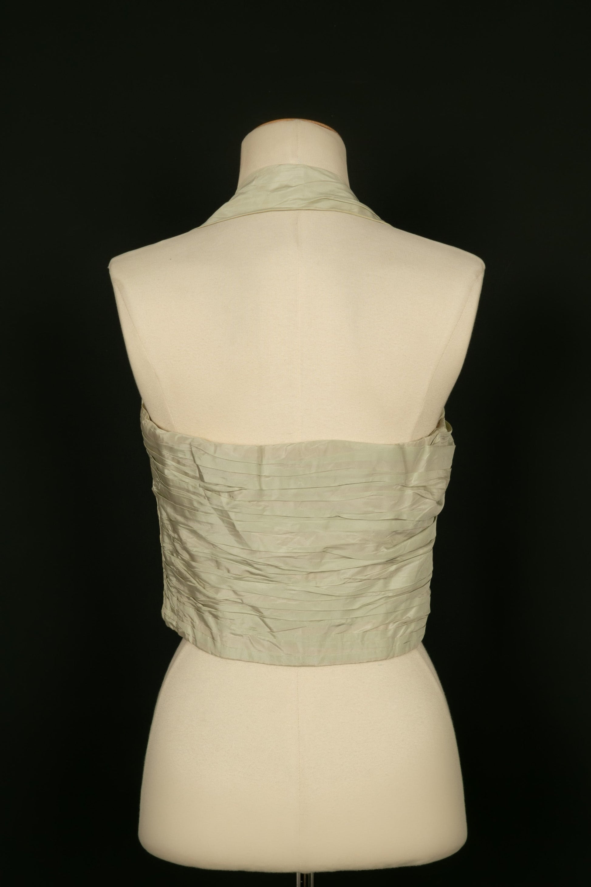 CHANEL - Bustier Haute Couture en taffetas de soie et son tole dans les tons de vert. Aucune tiquette de taille ou de composition, il convient un 36FR. Pice datant des annes 1985-1990.
