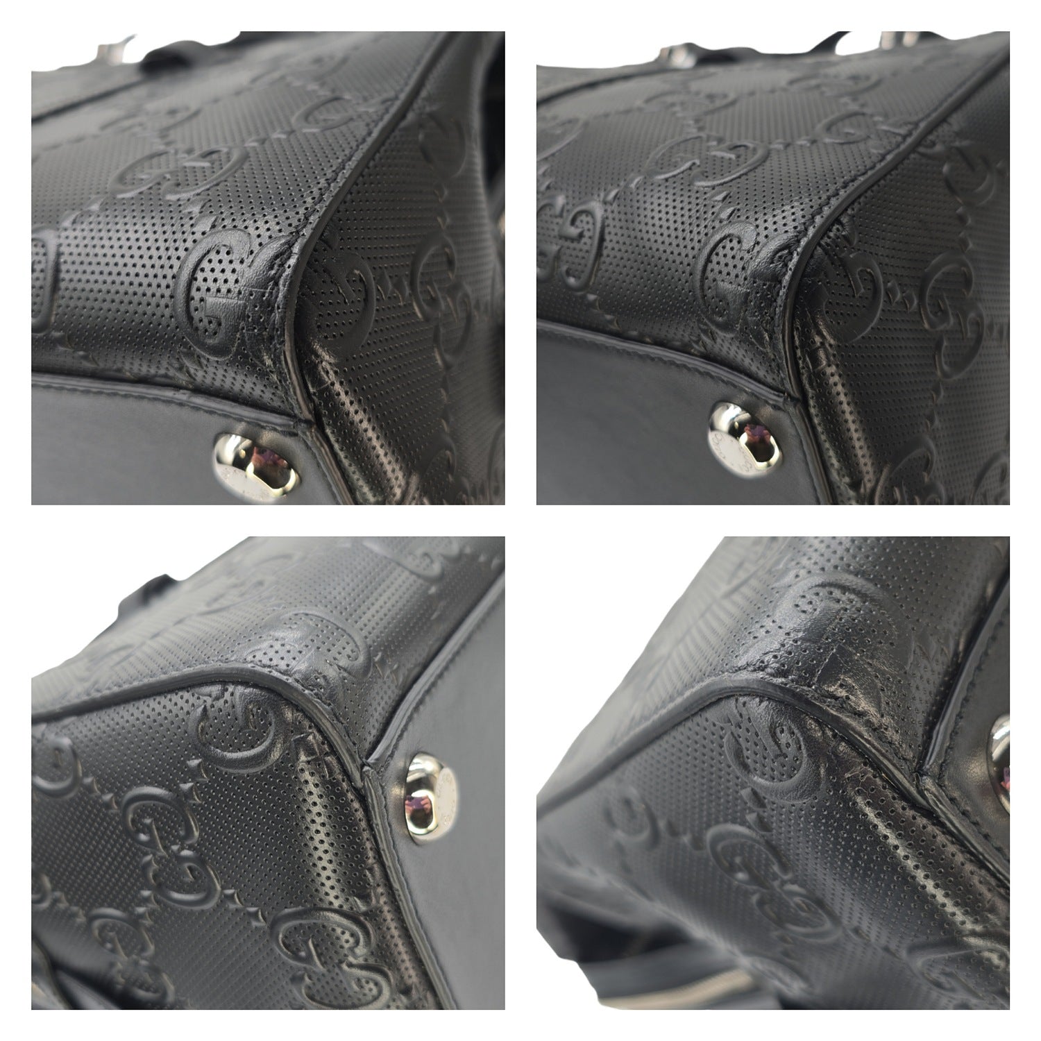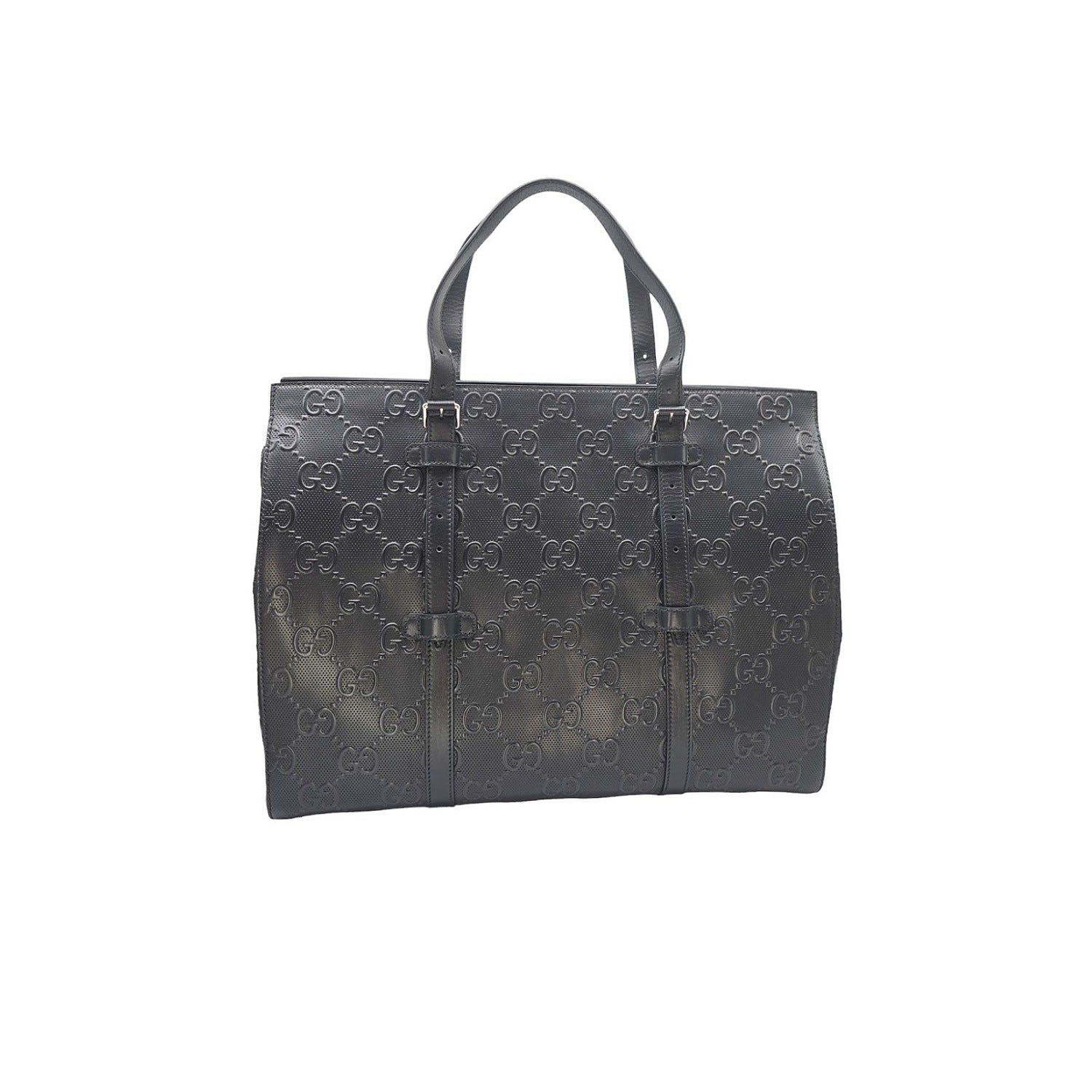 Gucci Black GG Embossed Perforated Leather Double Handle Tote