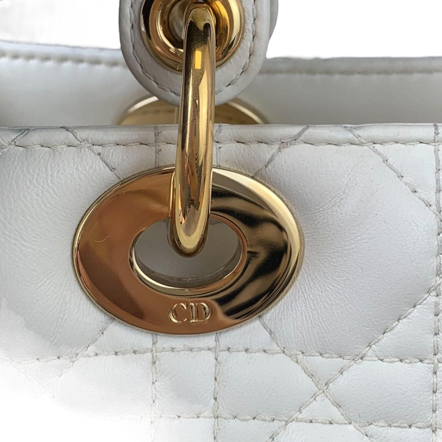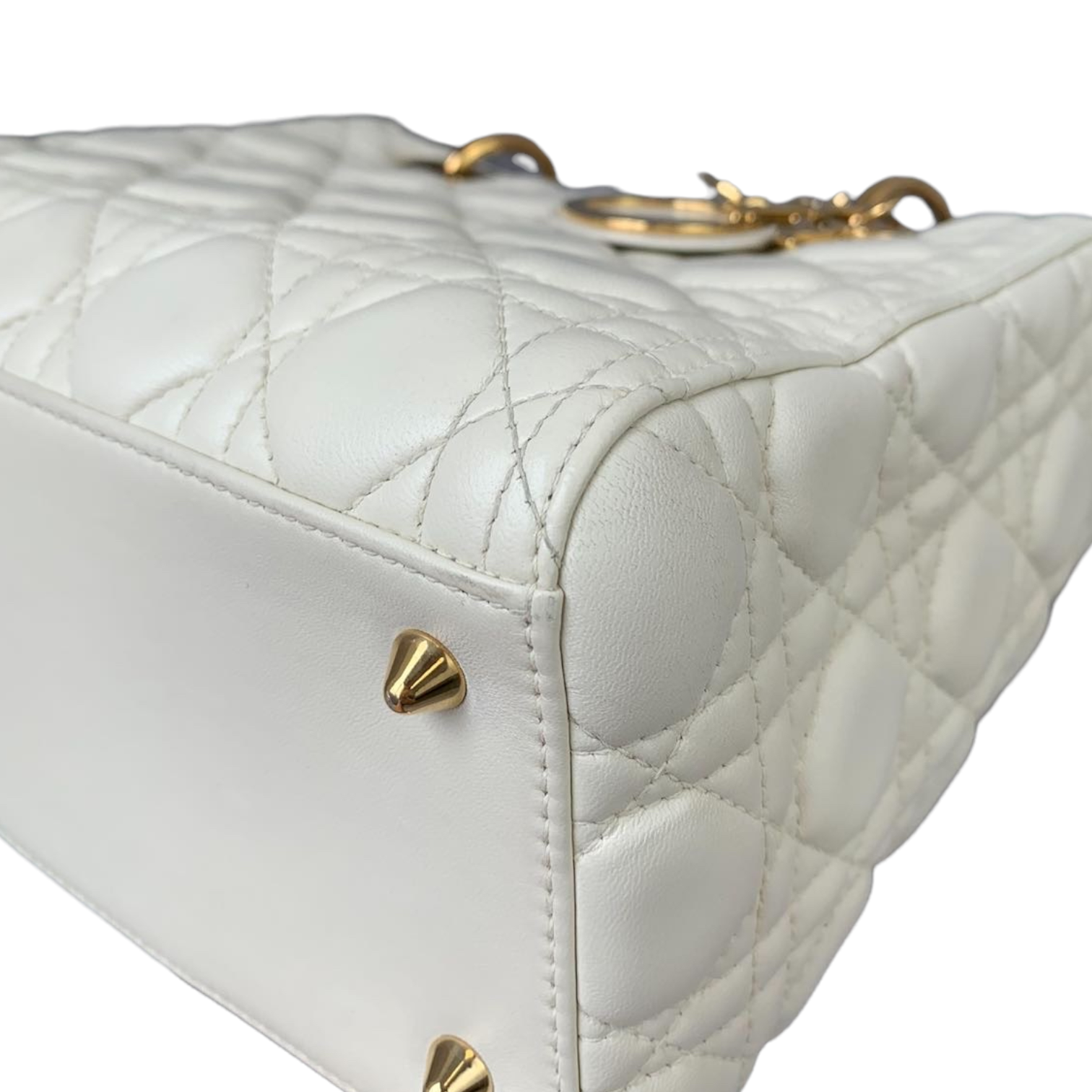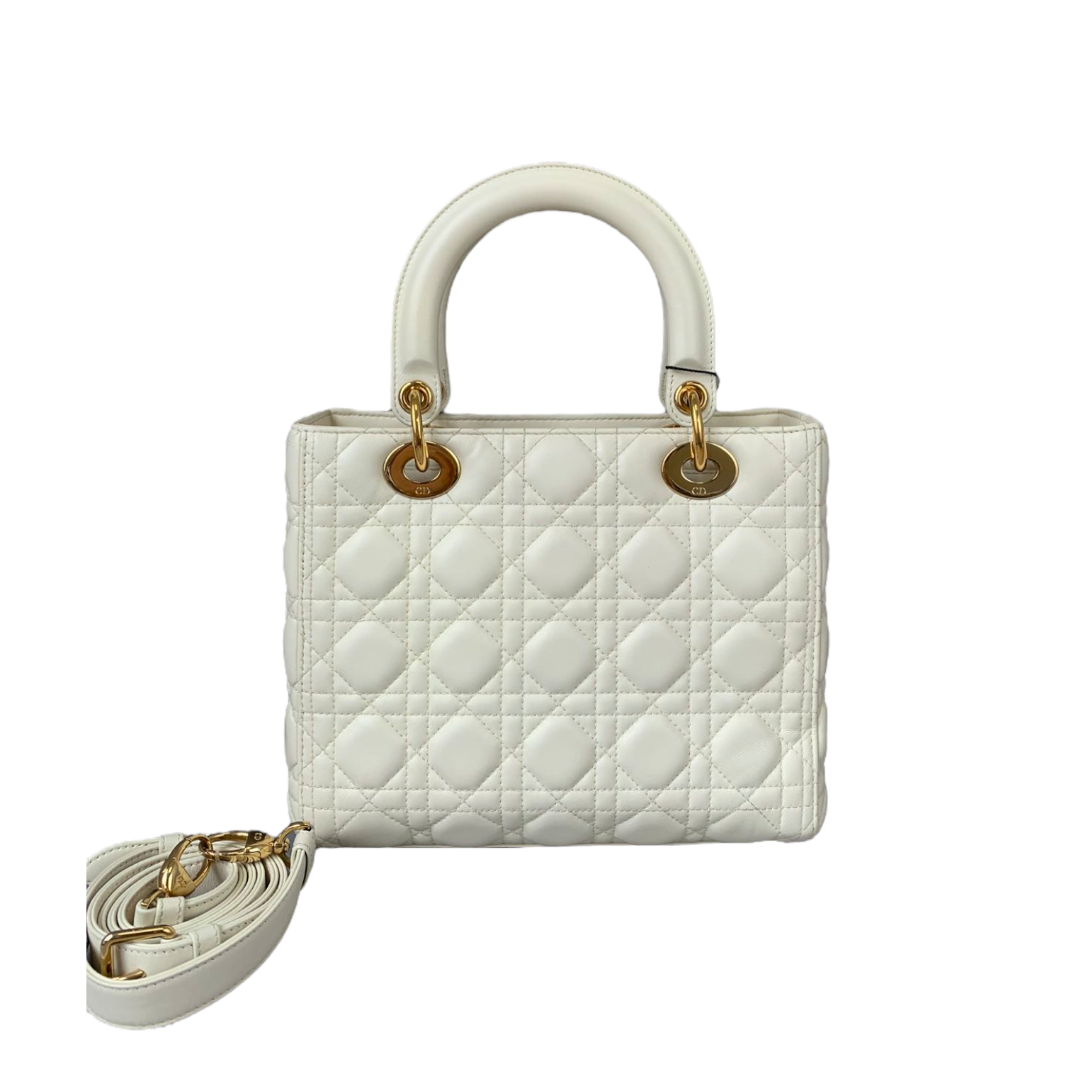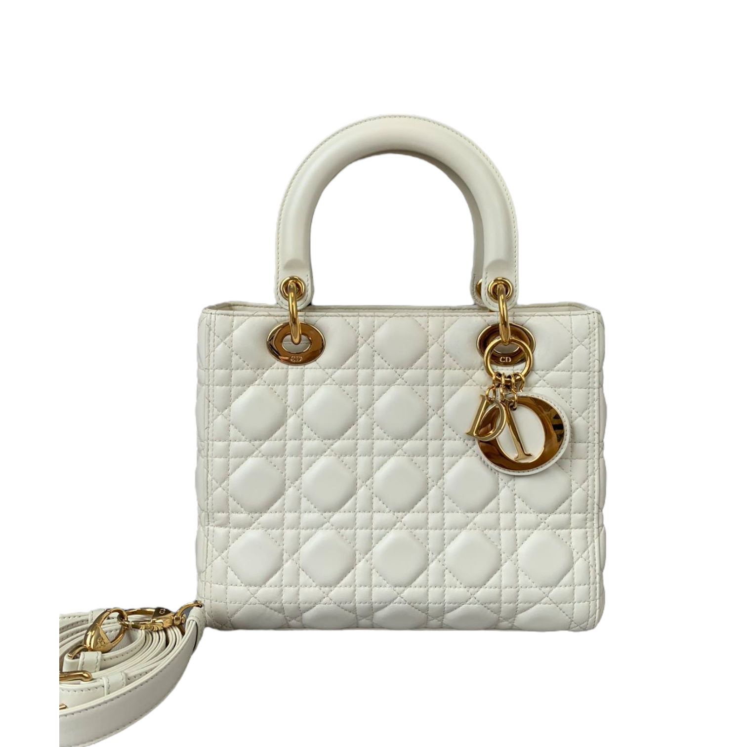 Cannage Lady Dior Medium White GHW