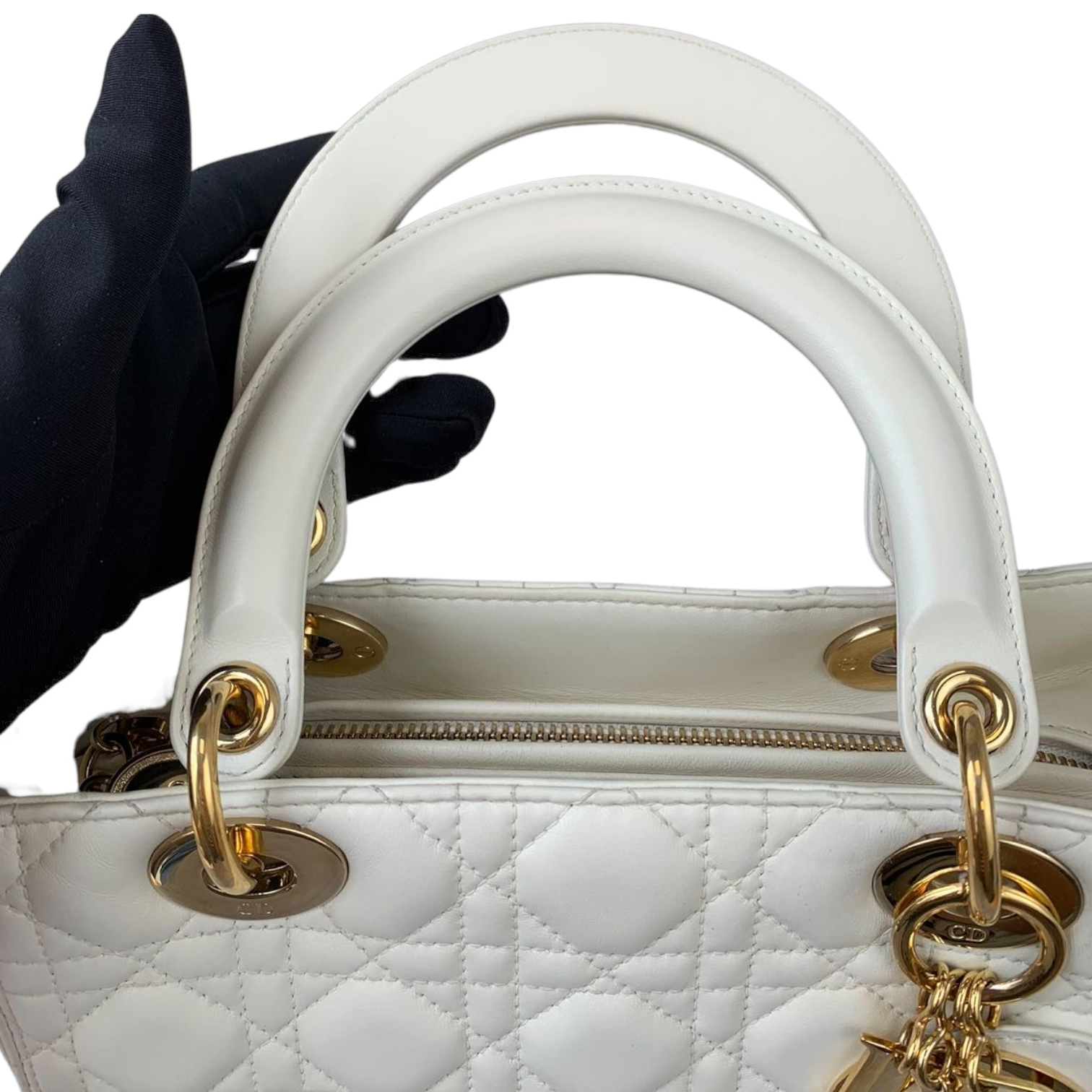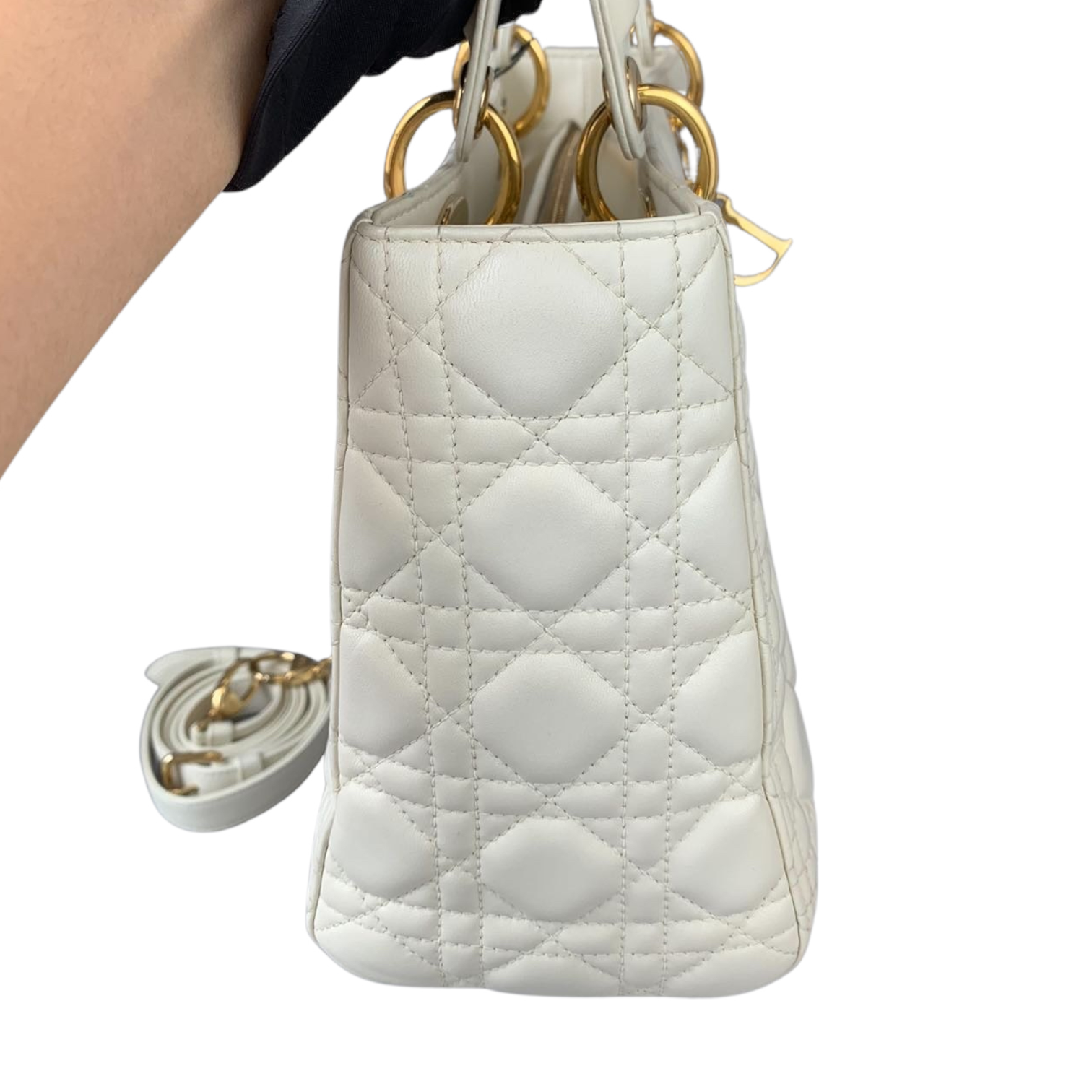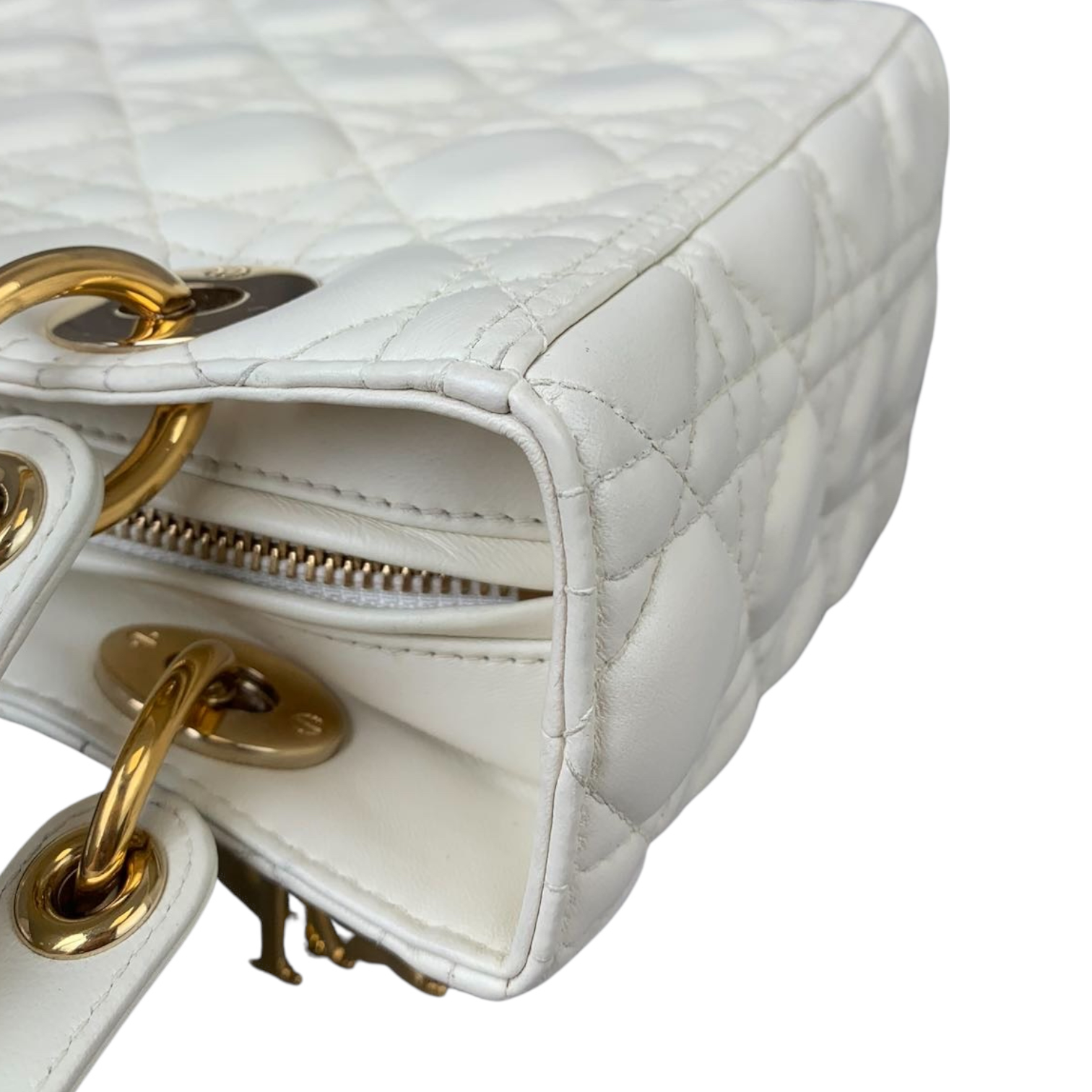 Cannage Lady Dior Medium White GHW