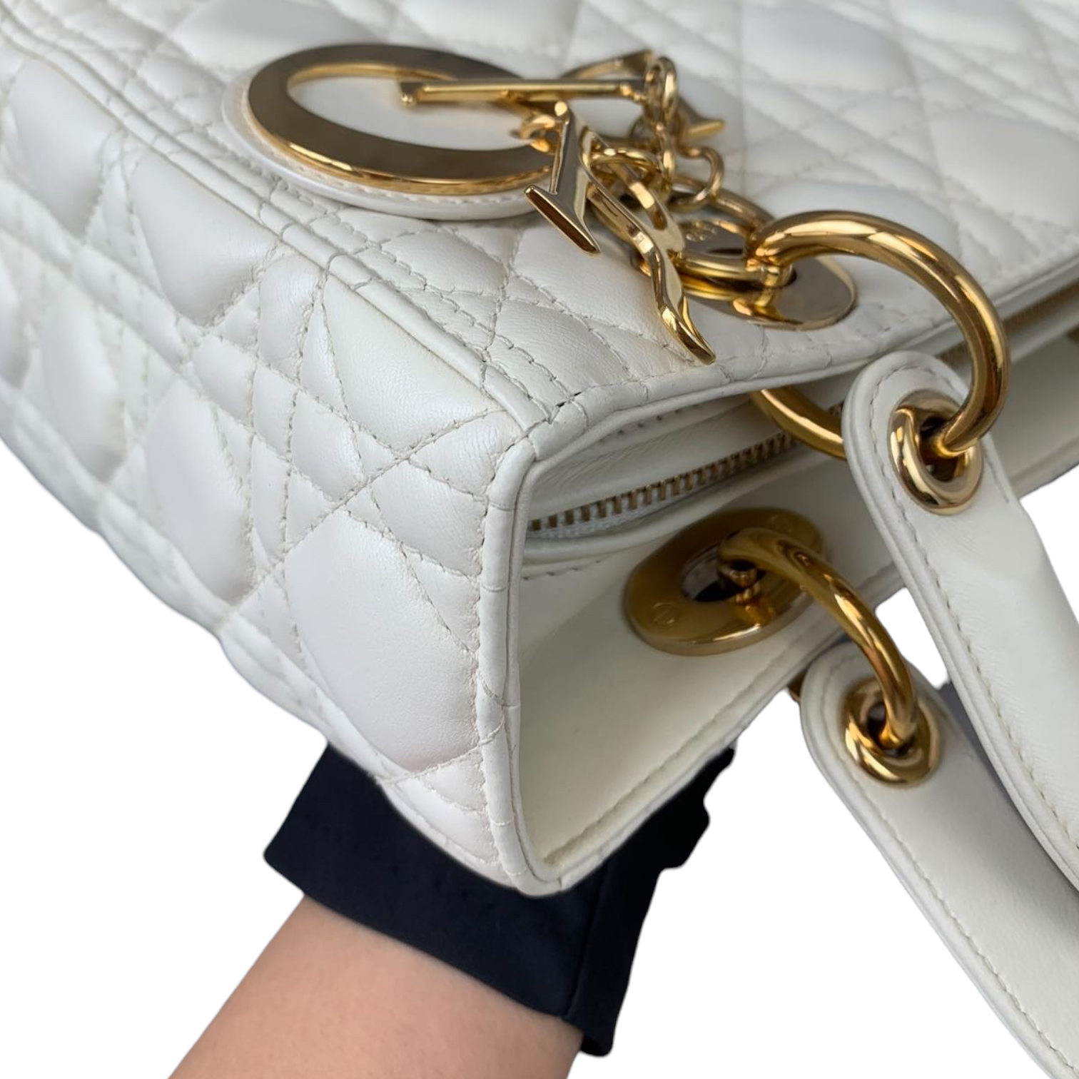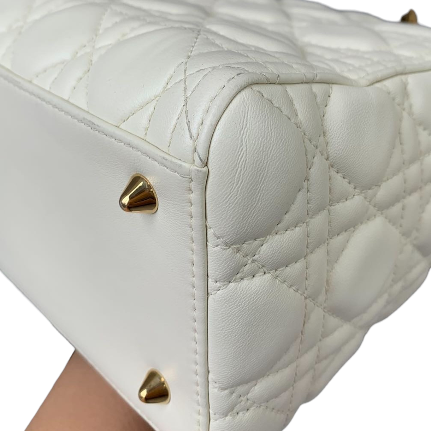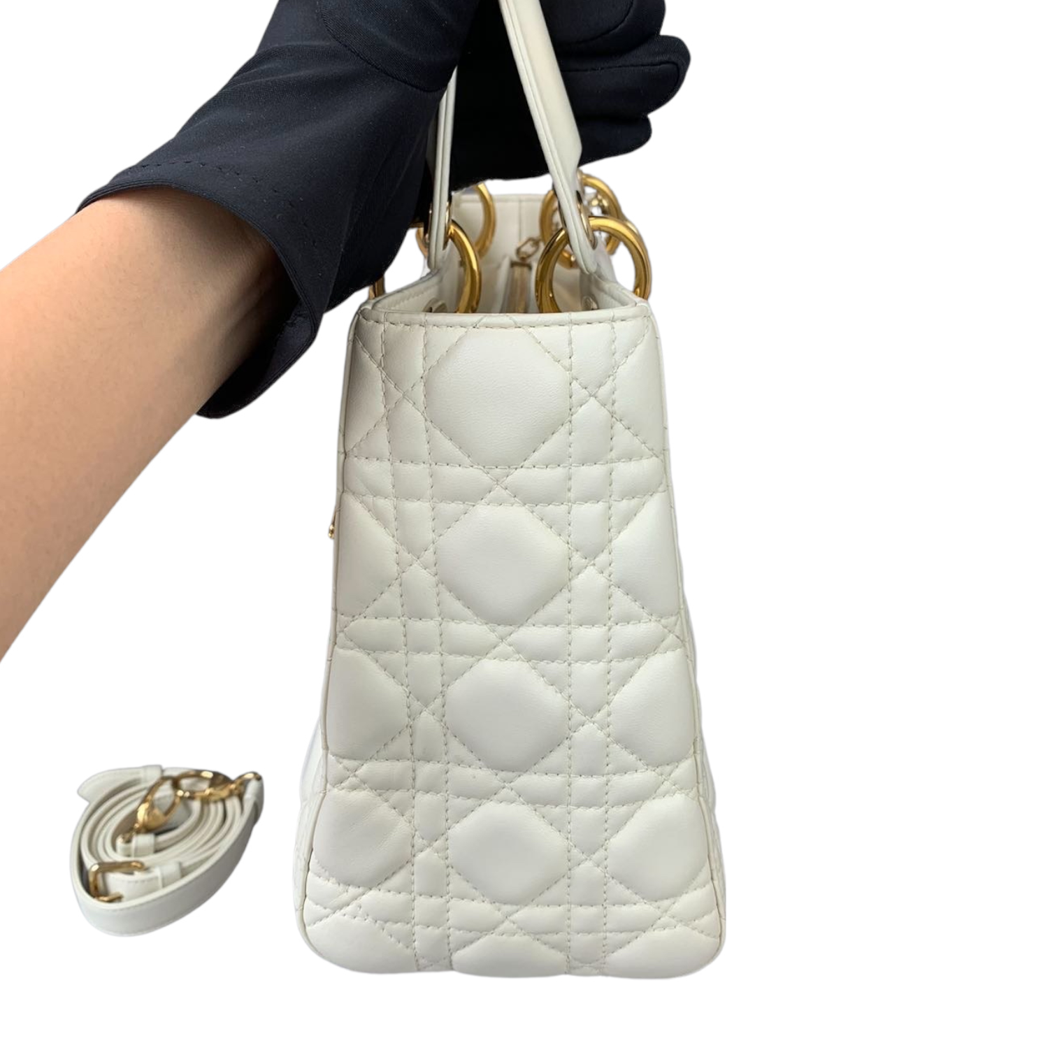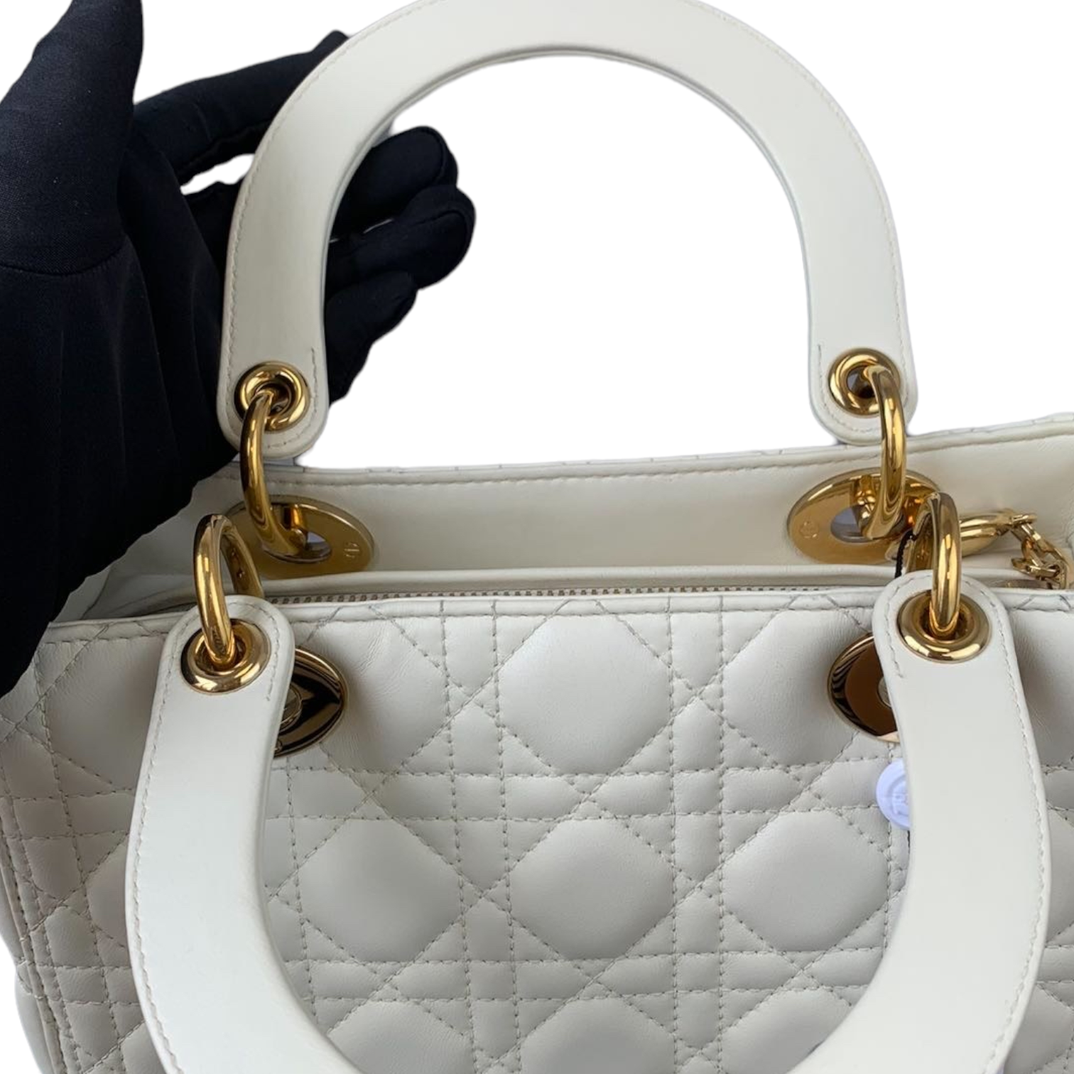 Cannage Lady Dior Medium White GHW