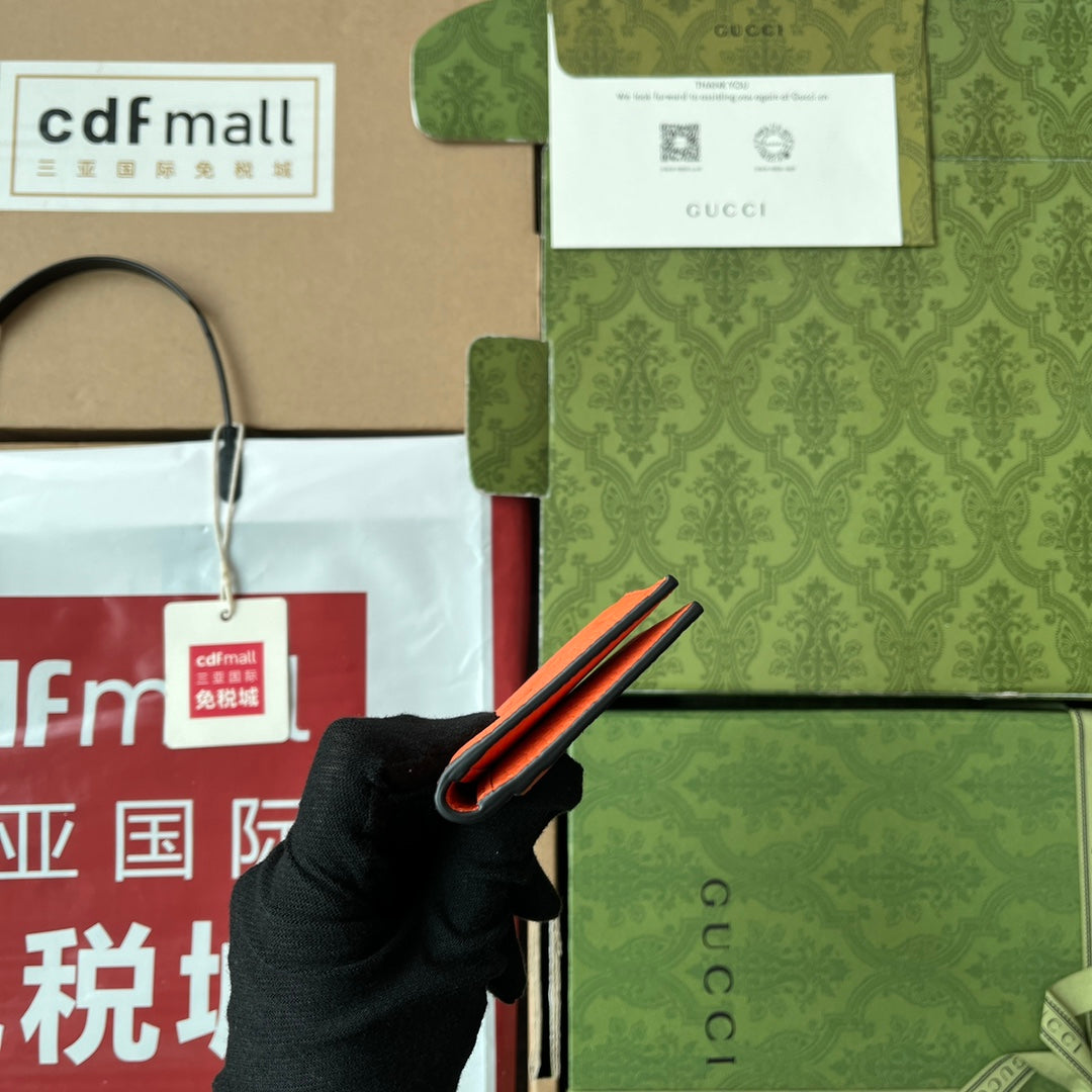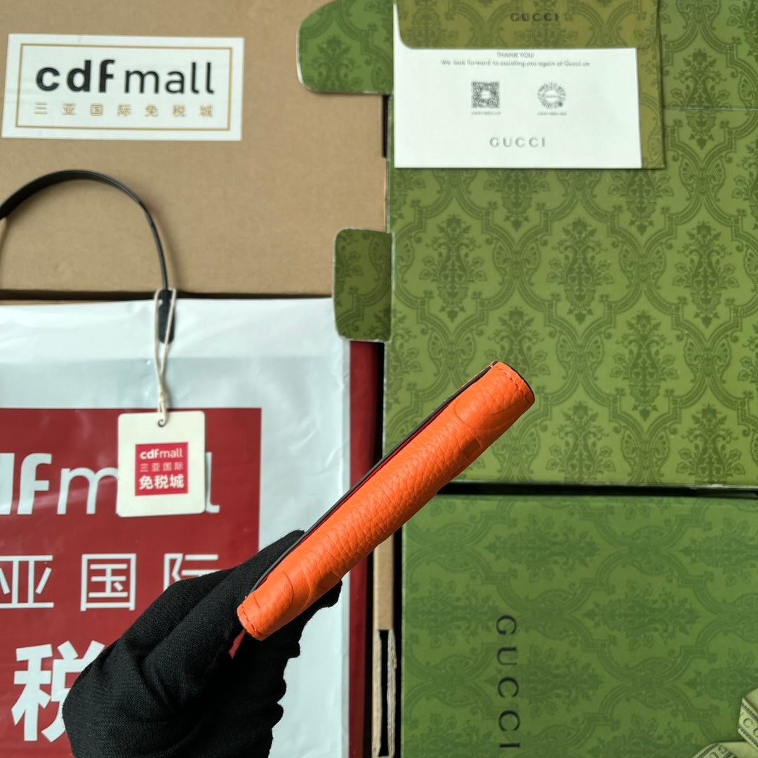Gucci CARD HOLDER 12 IN ORANGE EMBOSSED CALFSKIN