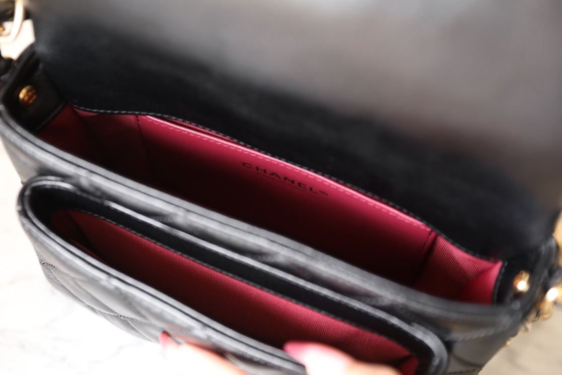 CHANEL 24a flap bag 20cm top handle black lambskin gold hardware