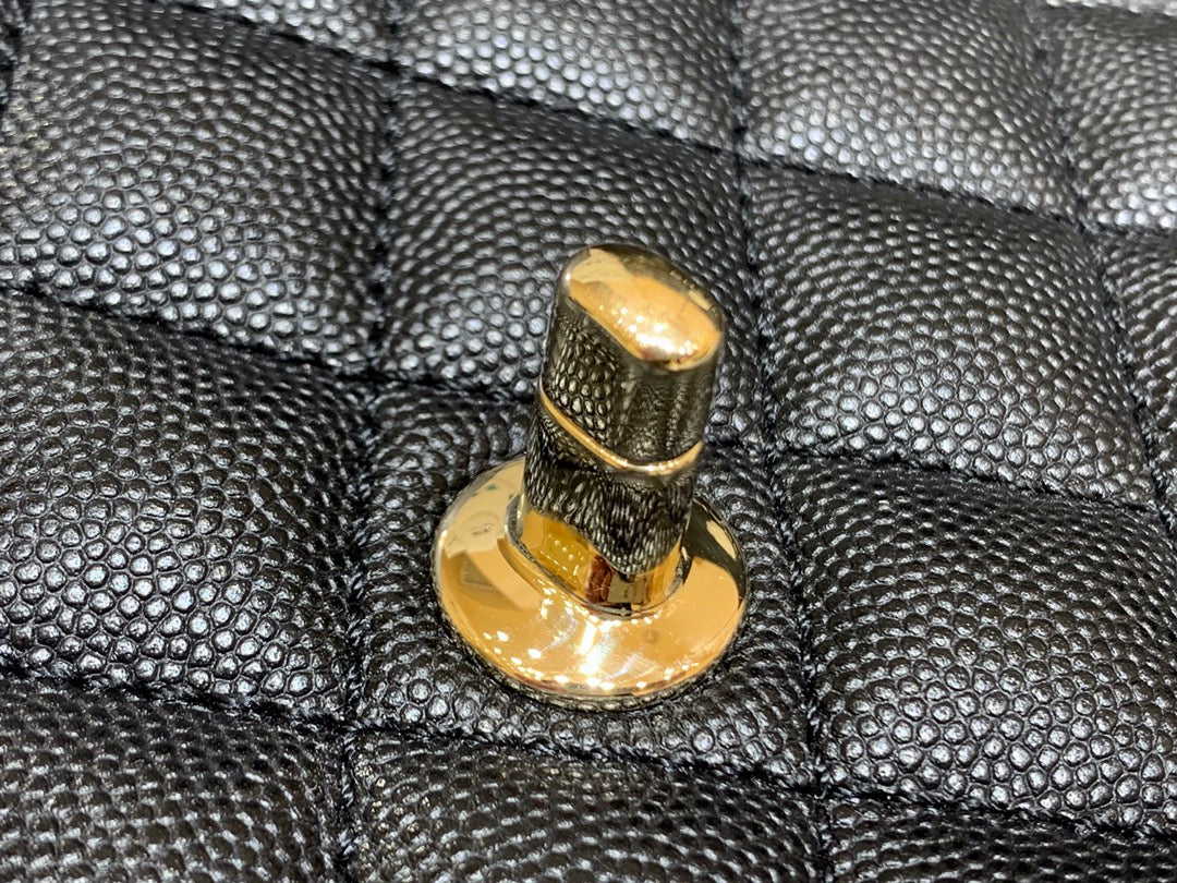 CHANEL 24K Coco Hanle Mini 19cm Black Red Grained Calfskin Gold Hardware