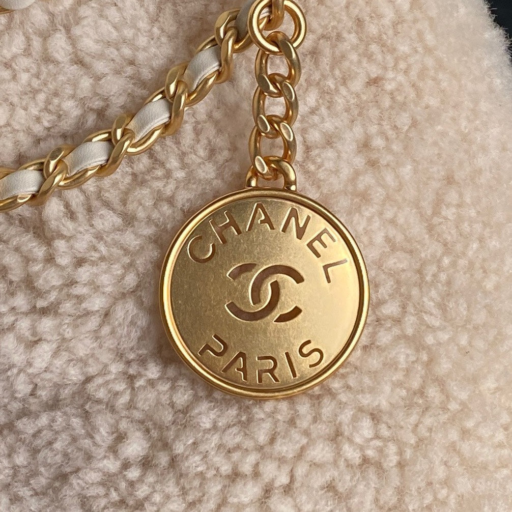 CHANEL 24K Hobo 22 Bag 20cm Beige Wool Fur